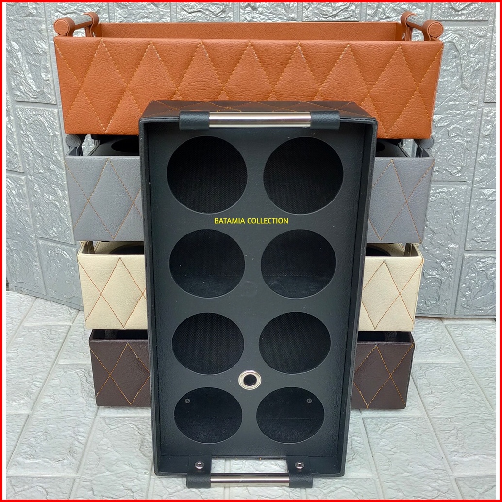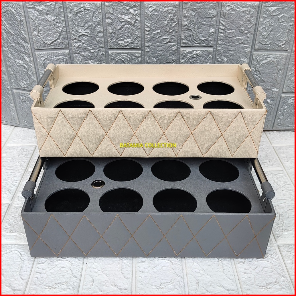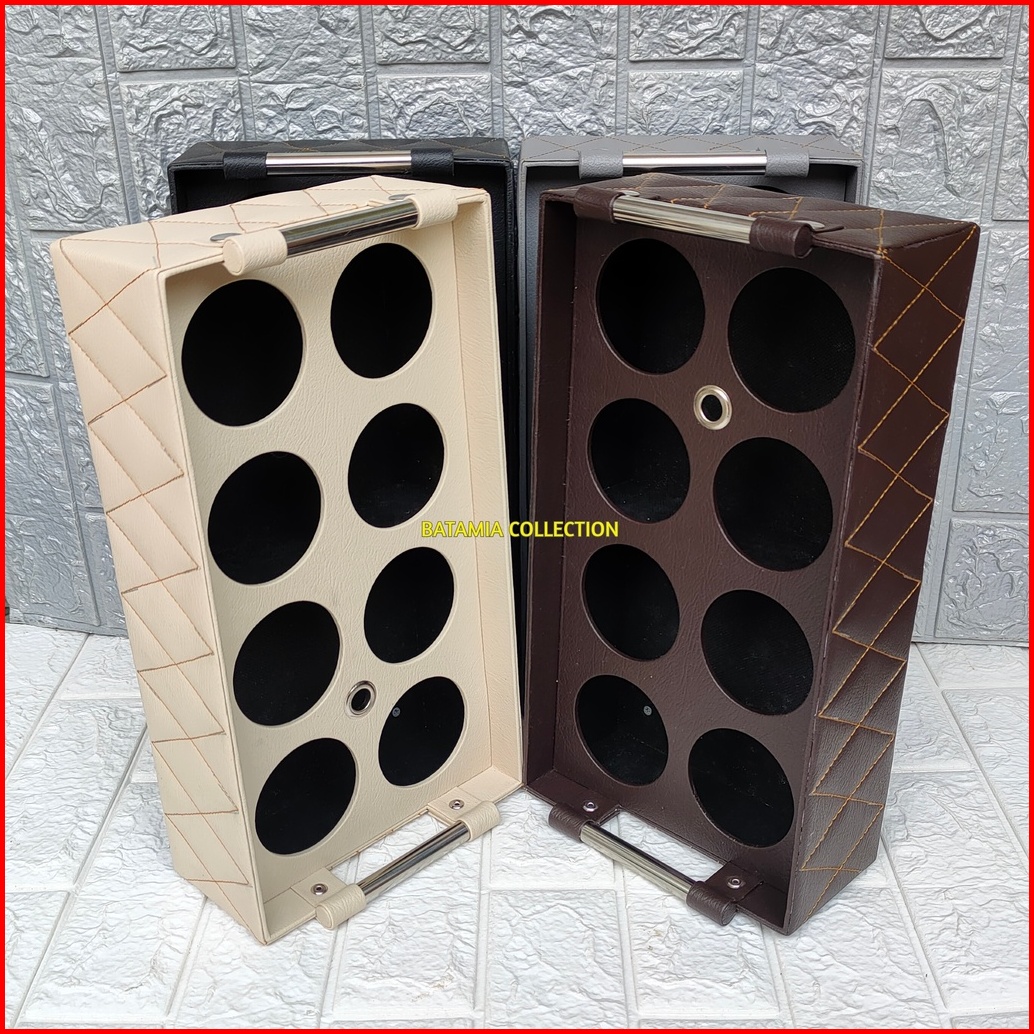 Tempat Aqua Gelas Isi 8 Motif Jahit Zigzag Keranjang Air Mineral Cup Kulit Sintetis