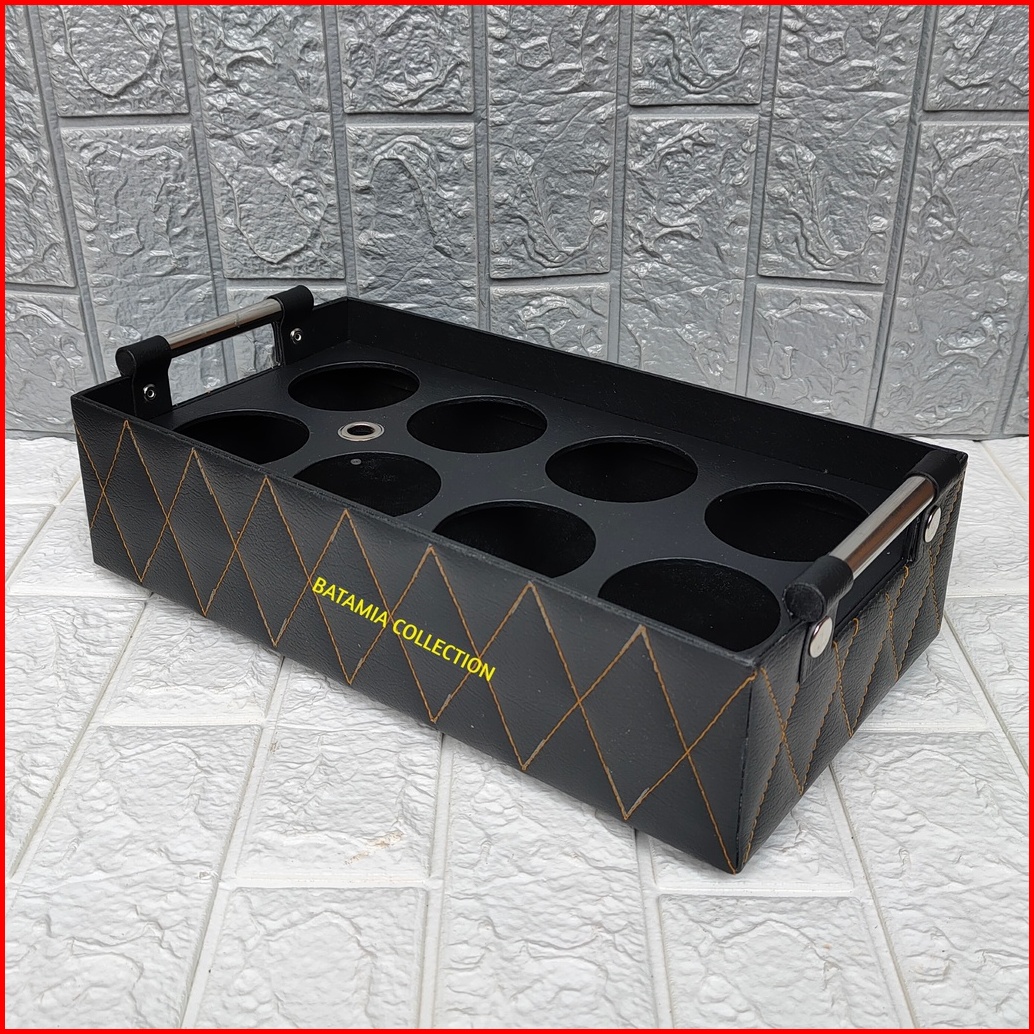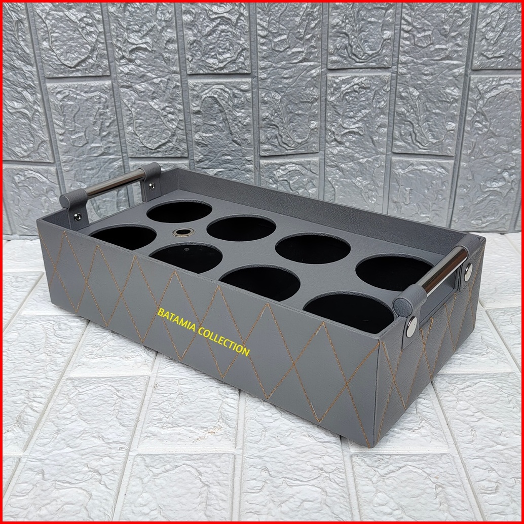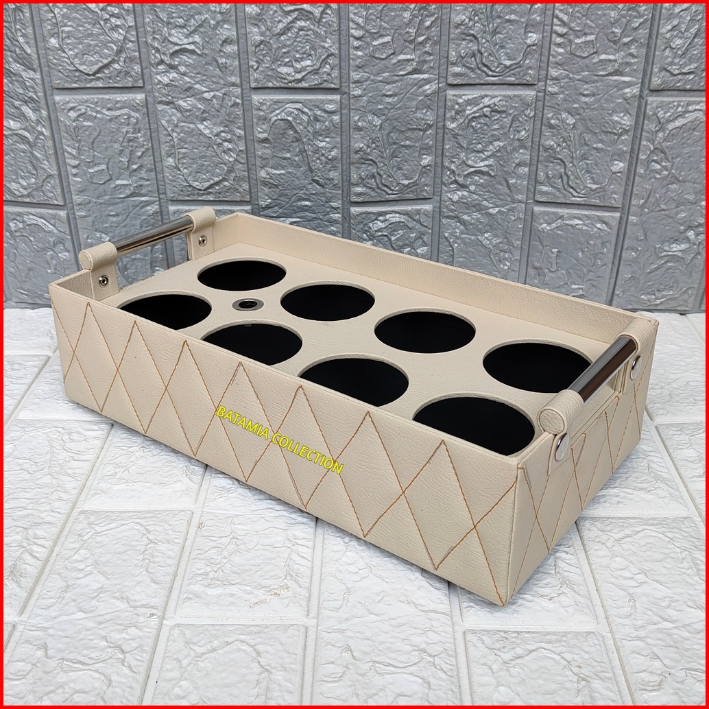 Tempat Aqua Gelas Isi 8 Motif Jahit Zigzag Keranjang Air Mineral Cup Kulit Sintetis