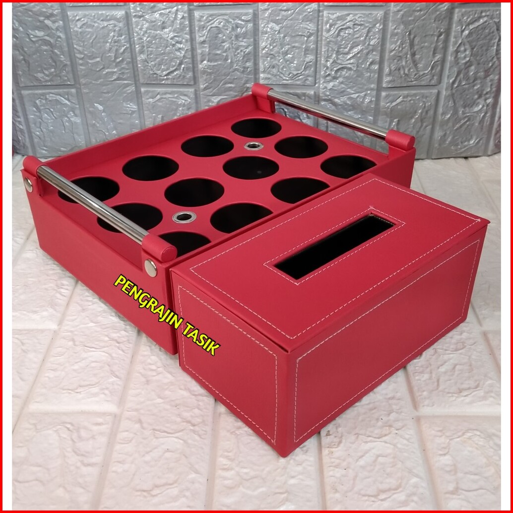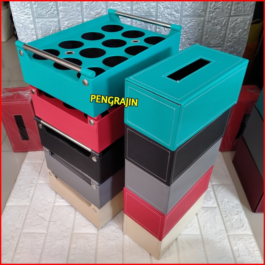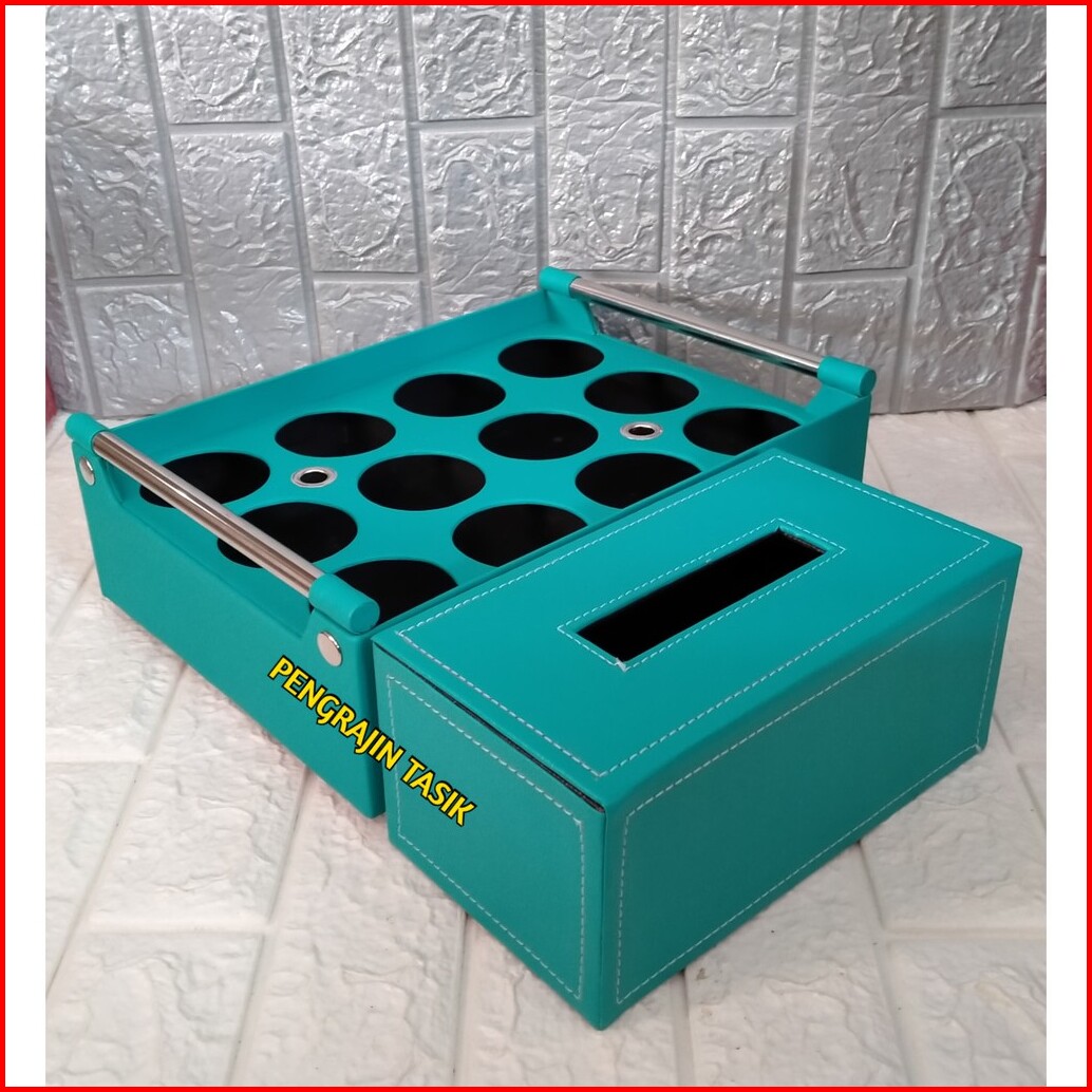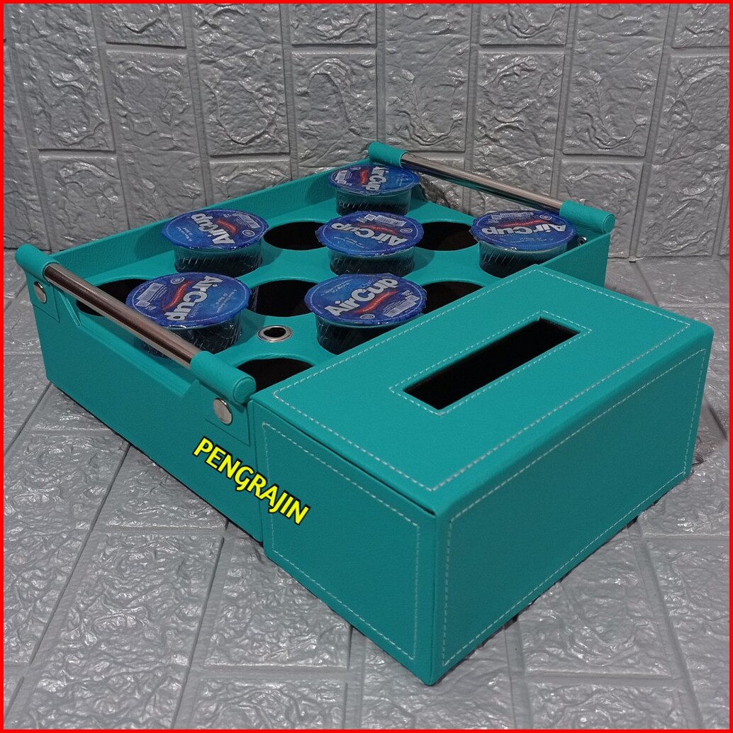 Tempat Aqua Gelas Kotak Isi 12 Cup Wadah Tissue Kotak Kulit Sintetis