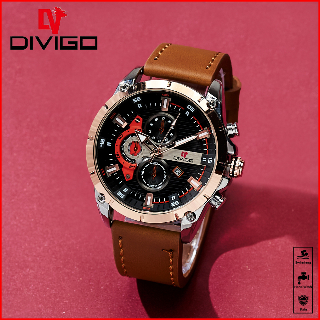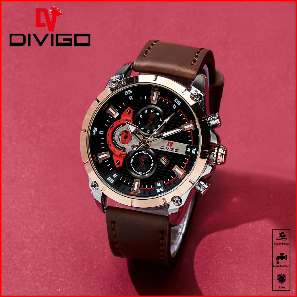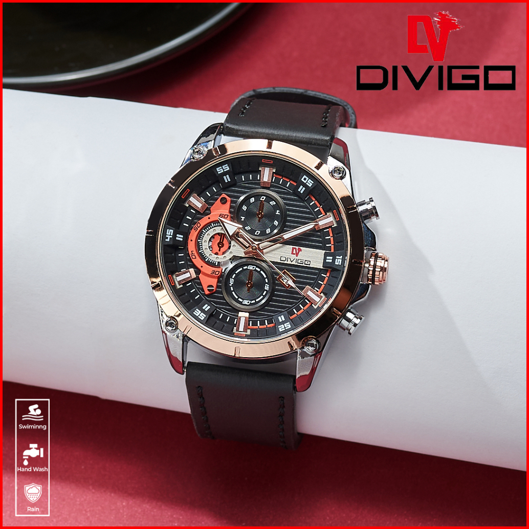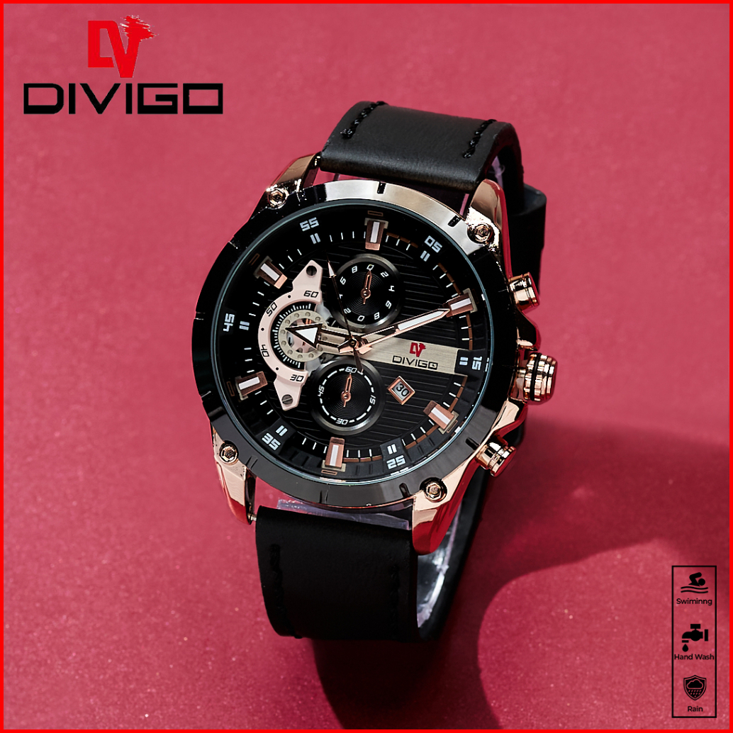 Jam Tangan Pria Divigo Original Dv-7017-1 Strap Kulit Tanggal Aktif