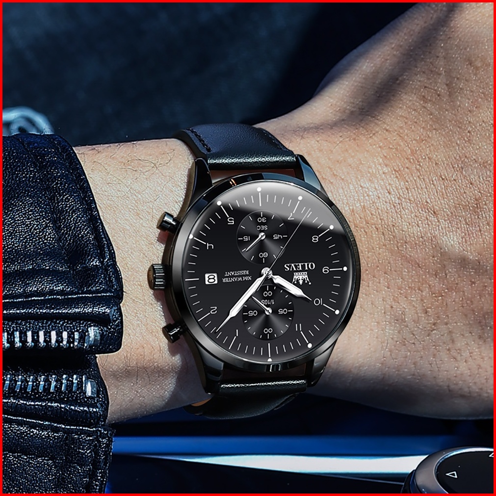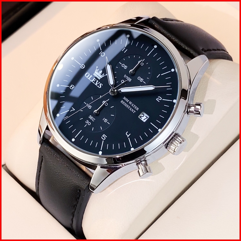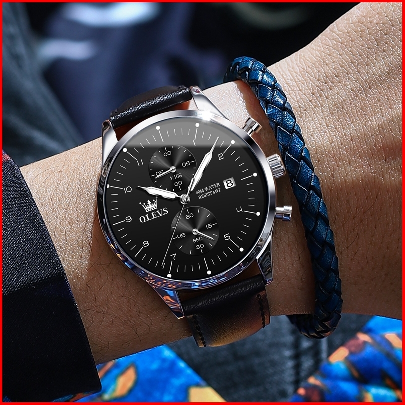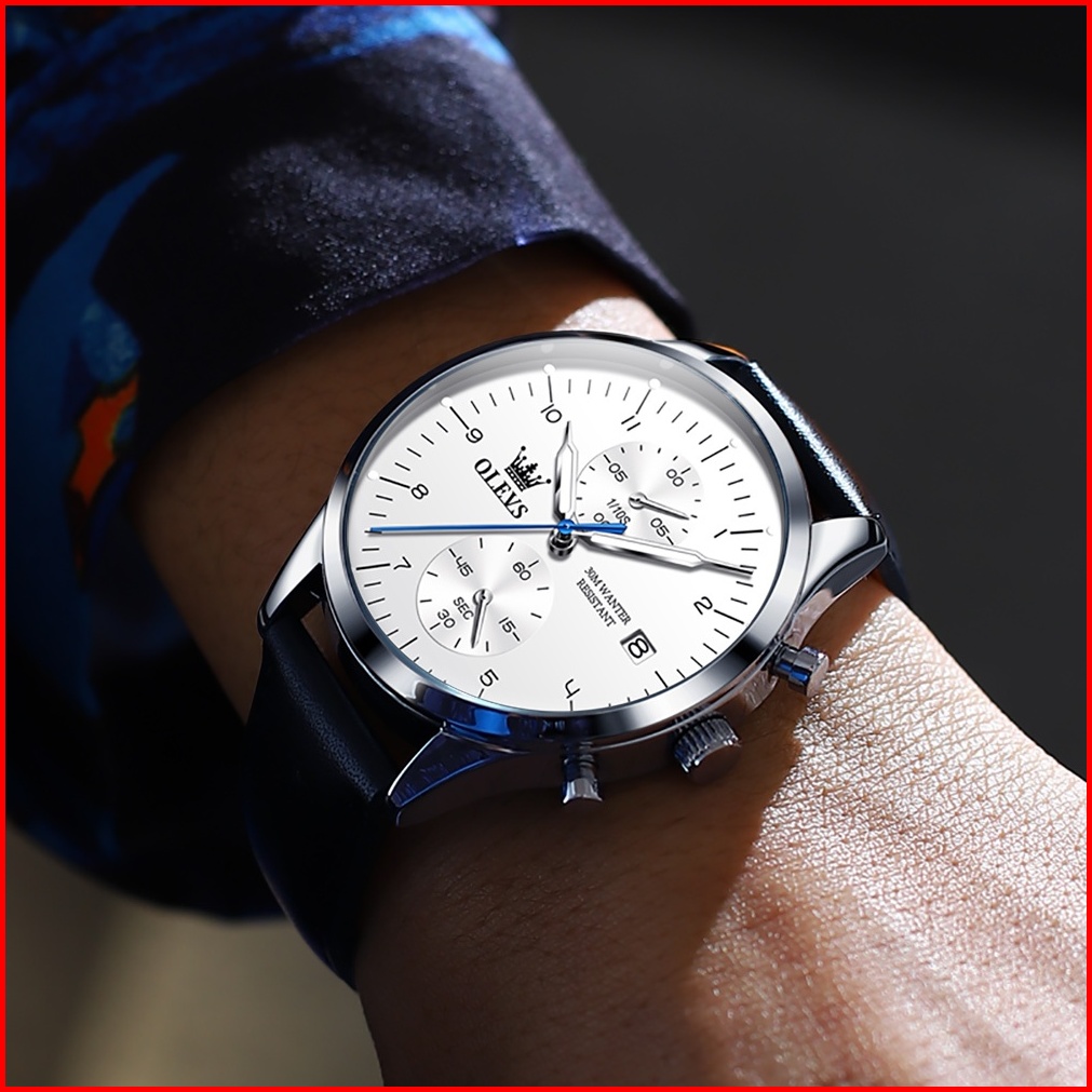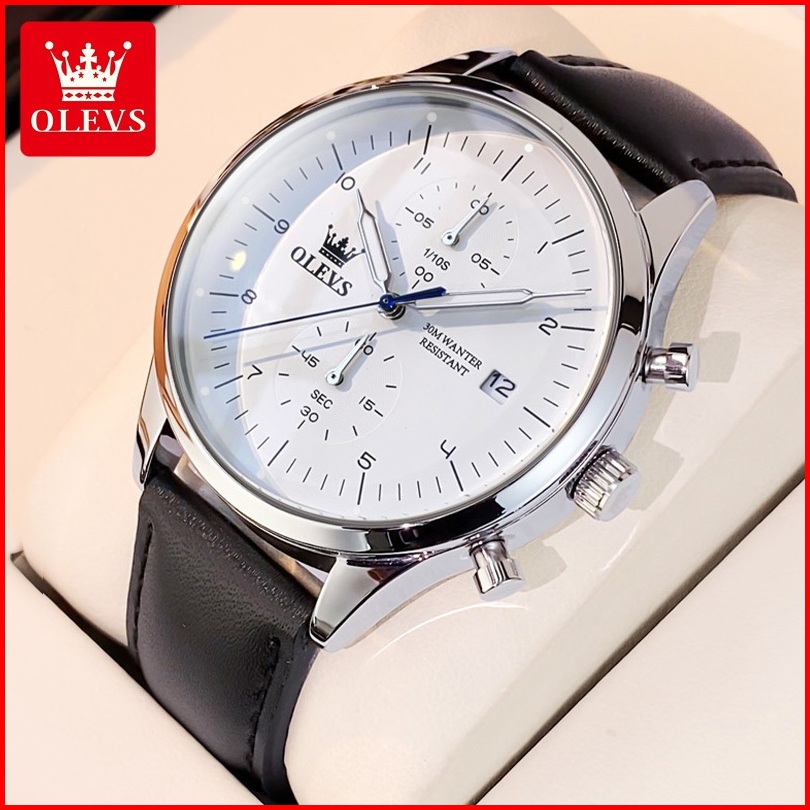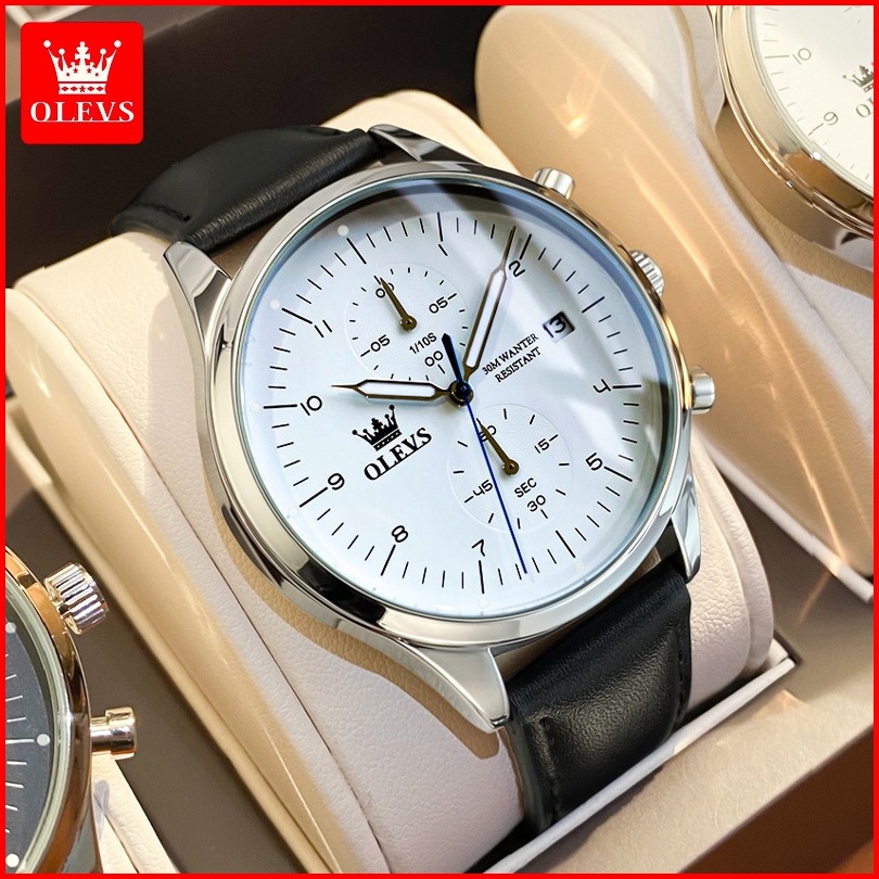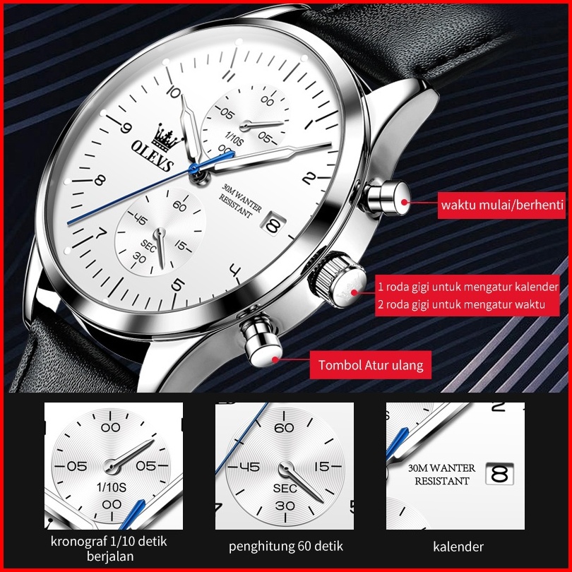Olevs Jam Tangan Pria Anti Air Original Kulit Keren Luxury Chronograph Watch Men Multifungsi