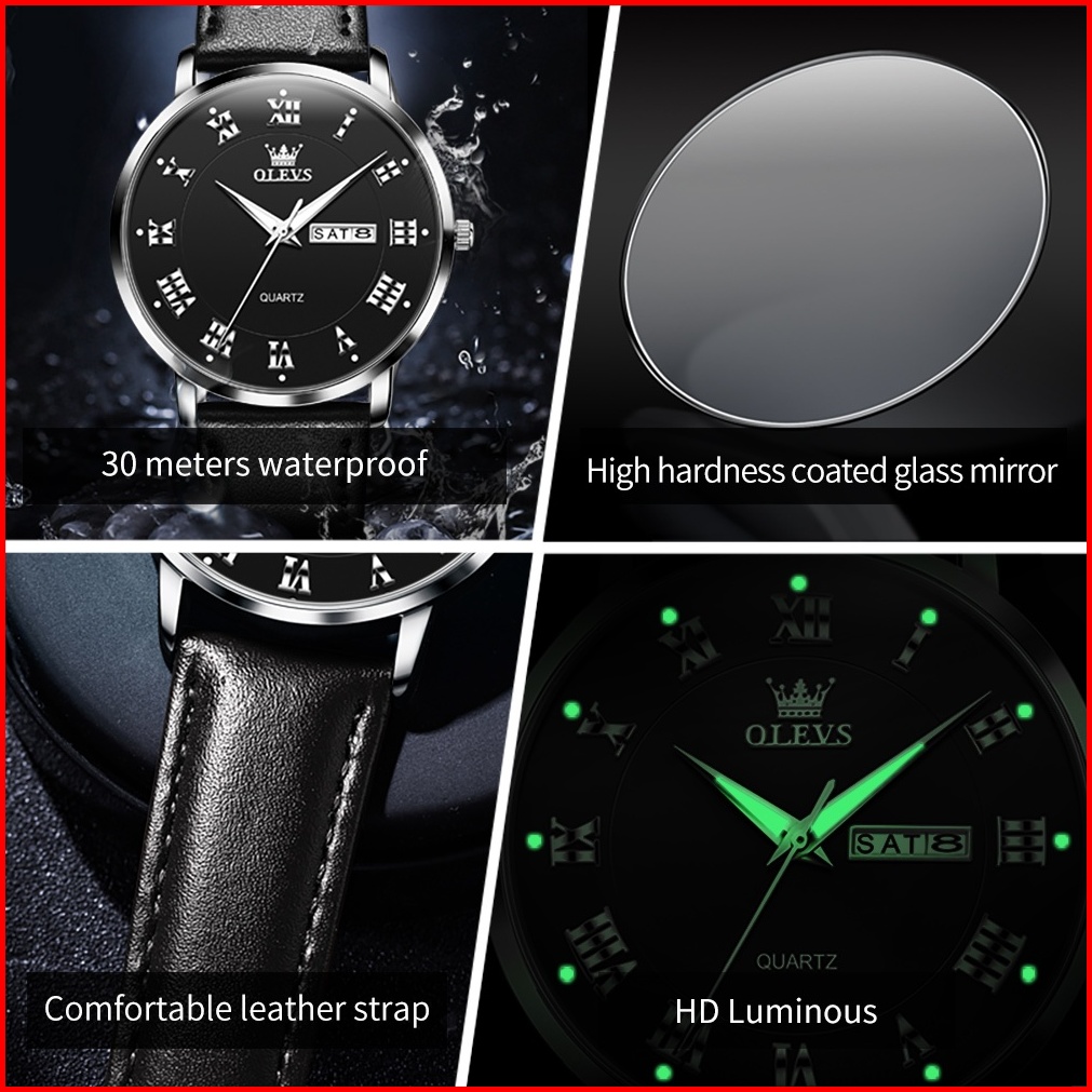 Olevs Jam Tangan Pria Anti Air Original Cowok Simple Terbaru Mewah 2025 Hitam Luxury Watch Men