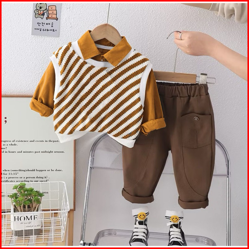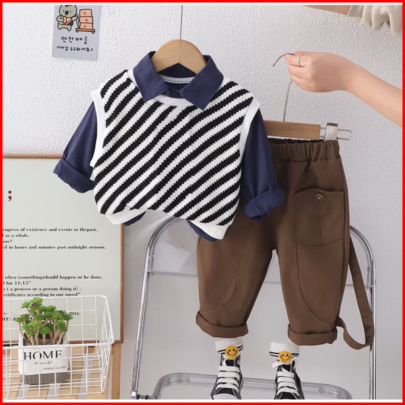 Setelan Anak 1-5 Tahun 3in1 Rompi Rajut Kemeja Vest Celana Panjang Anak Pakaian Anak Cowok Outfit Anak Keren Baju Anak B