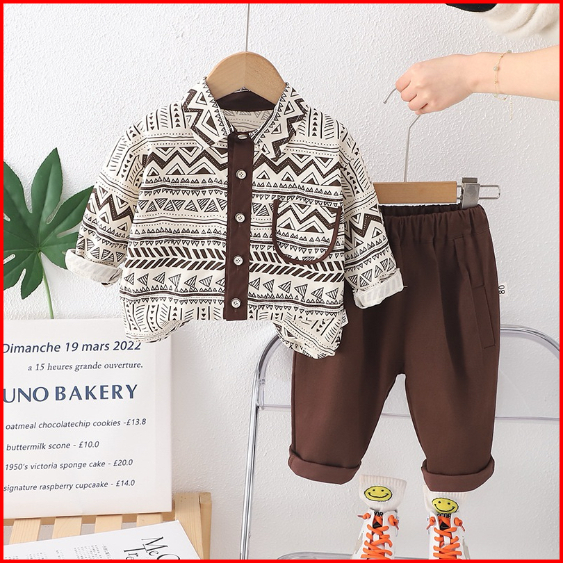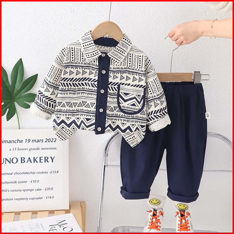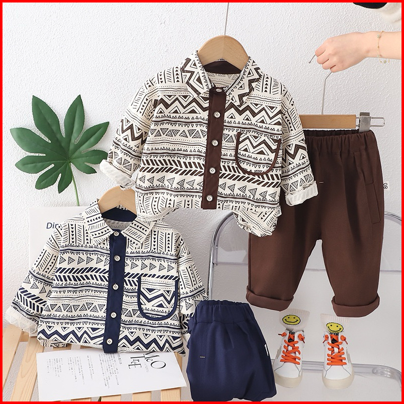 Setelan Kemeja Anak Laki Laki Import Set Baju Anak 2-6 Tahun Outfit Anak Cowok Motif
