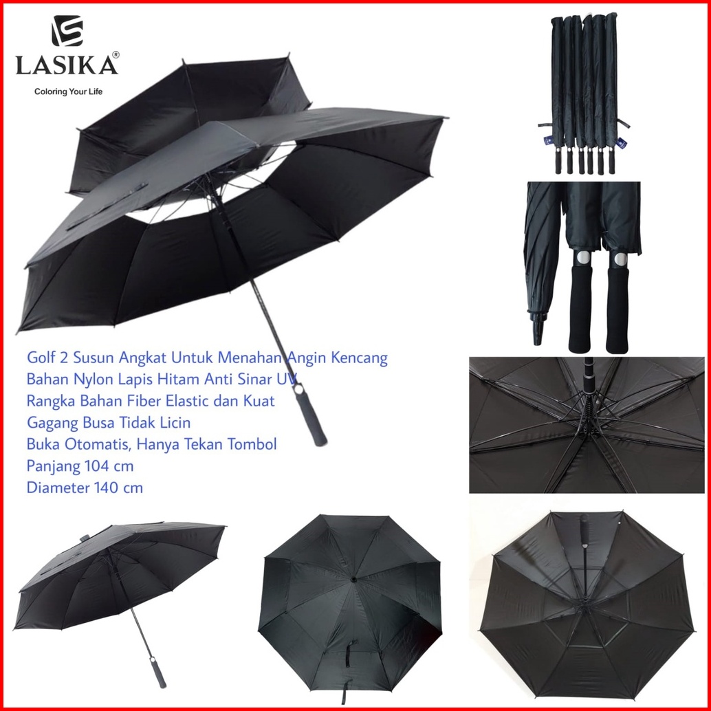 Payung Golf Automatis 2 Susun Rangka Warna Bahan Nylon Lasika 007