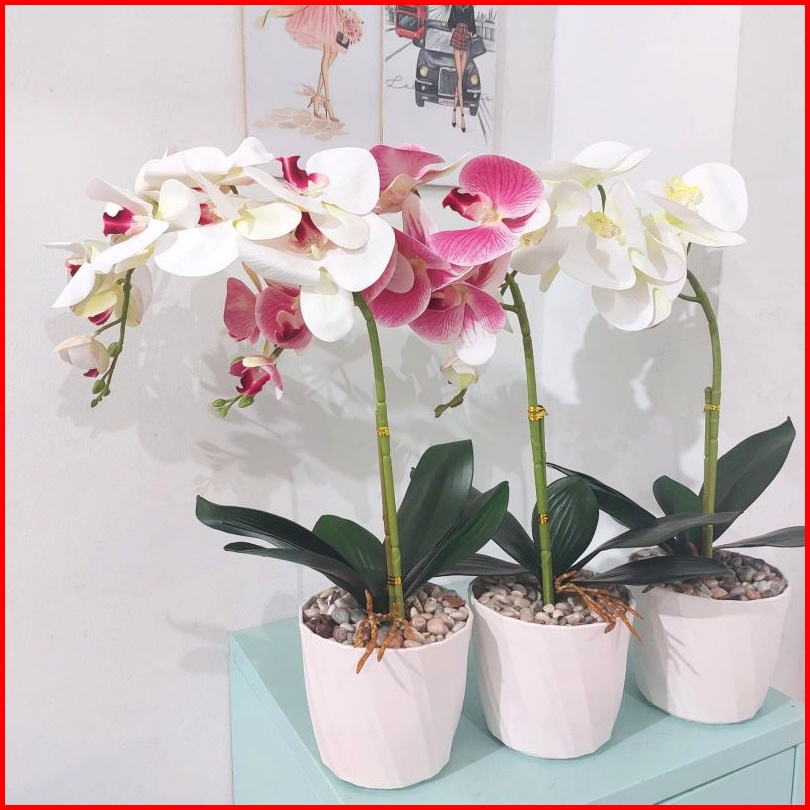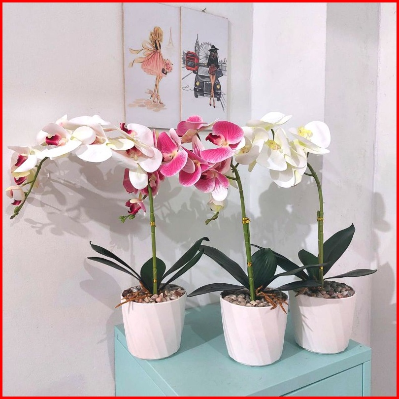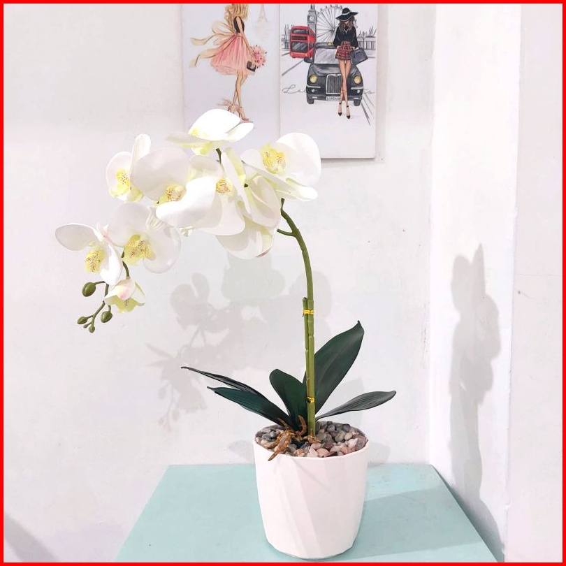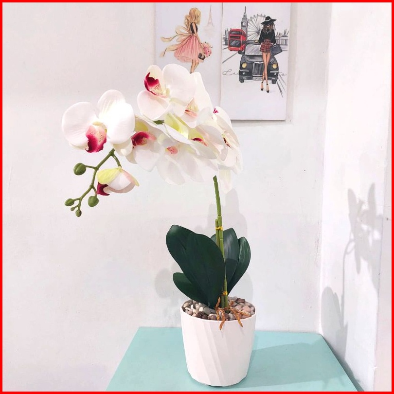 Bunga Anggrek Latex Jumbo Bunga Artificial Latex Pajangan Hiasan Gift Kado Hampers Bunga Import Plastik Murah 1 Set Bung