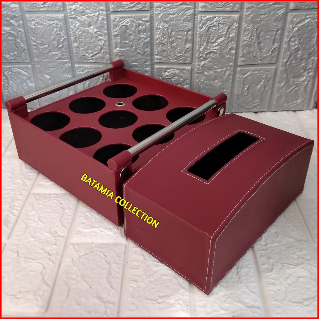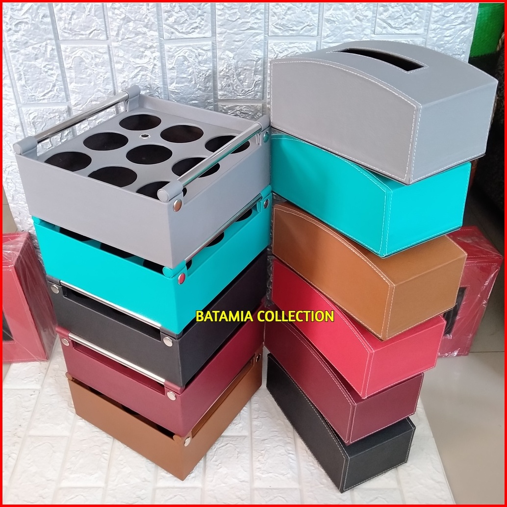 Tempat Aqua Gelas Isi 9 Cup Wadah Tissue Lengkung Kotak Tisu Kulit Sintetis Keranjang Air Mineral Gelas Tempat Tissue Te