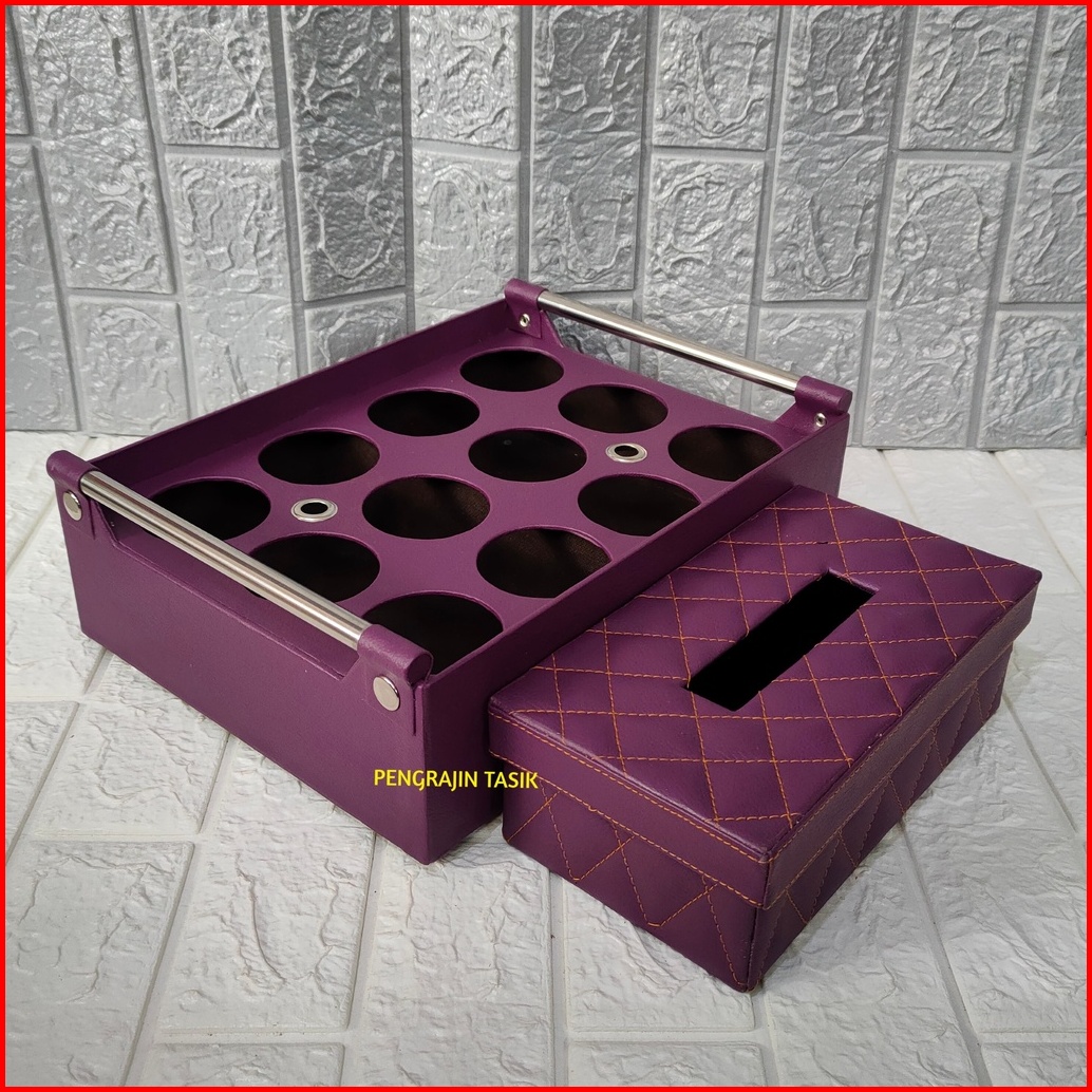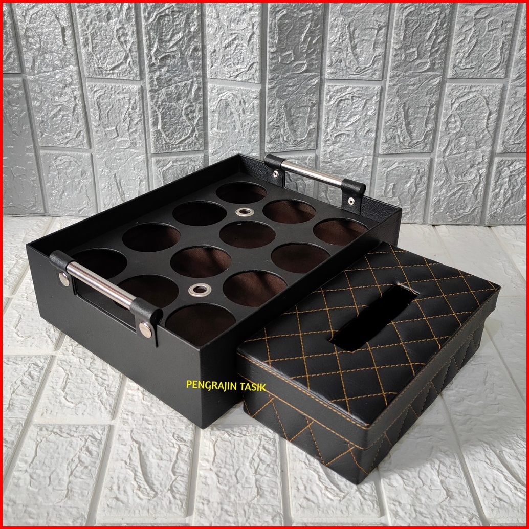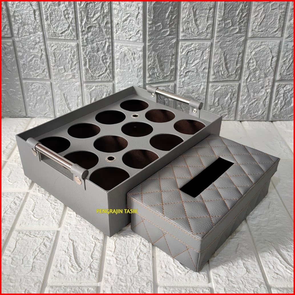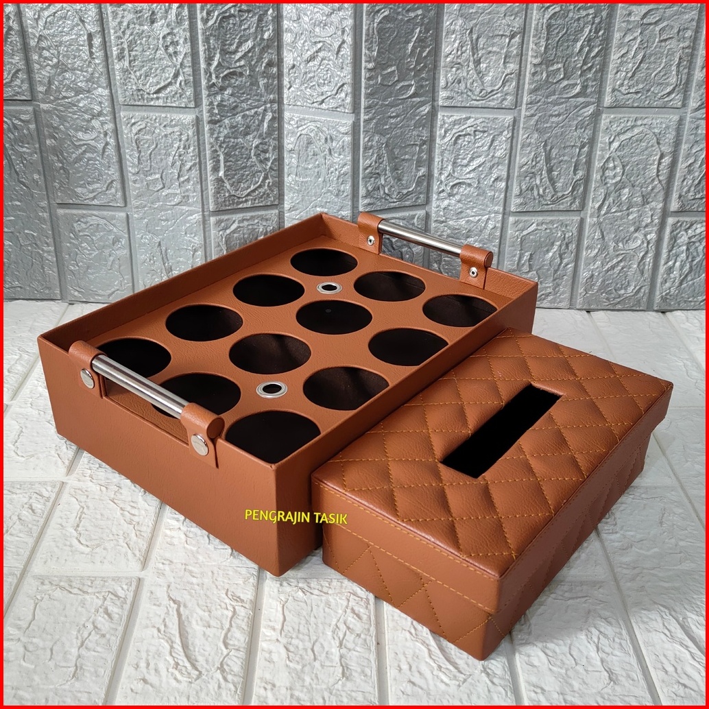 Keranjang Aqua Gelas Kulit Sintetis Isi 12 Cup Tempat Tisu Motif Zigzag