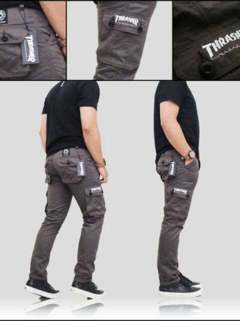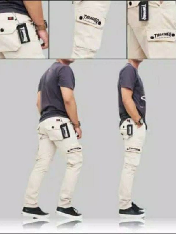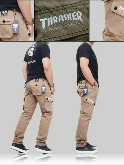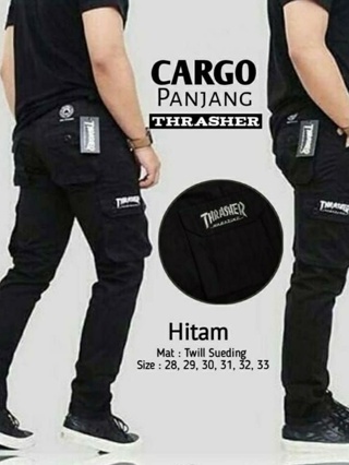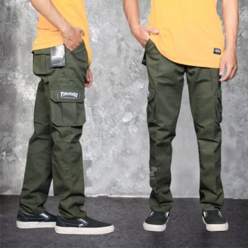 (Gratis Ongkir) Celana Cargo Panjang Thrasher Pria Bahan Tebal Nyaman Di Pakai Size 28-38 Celana Kargo Bordir Panjang La