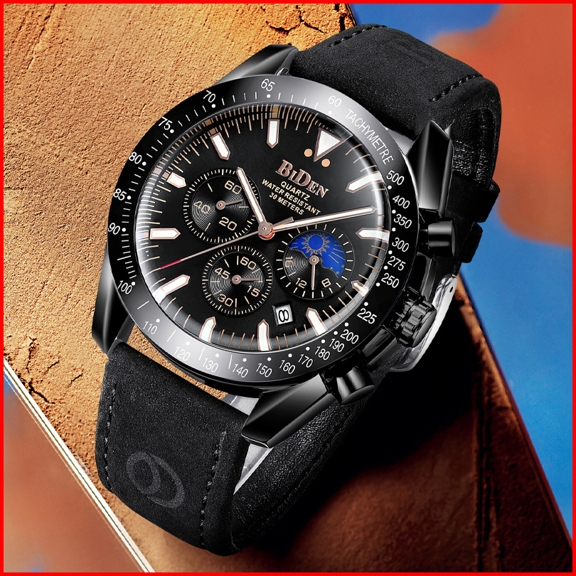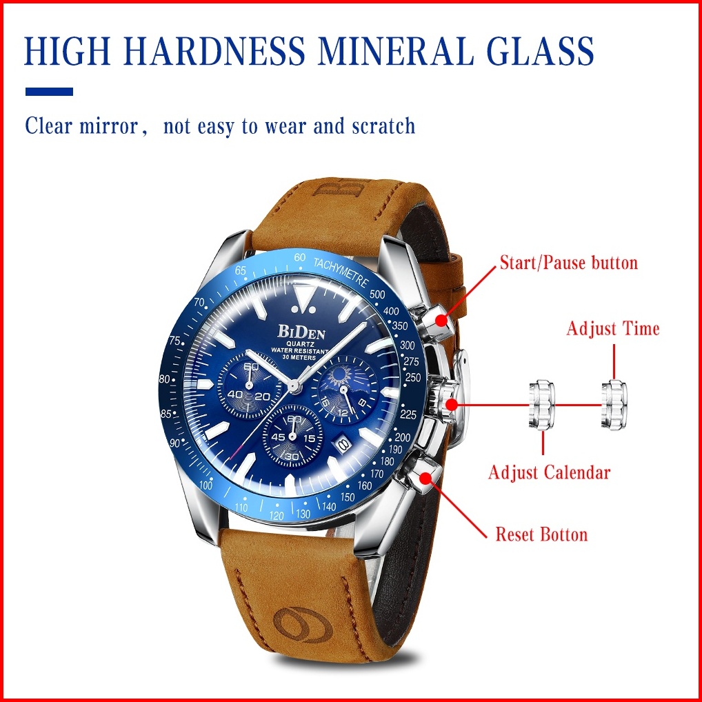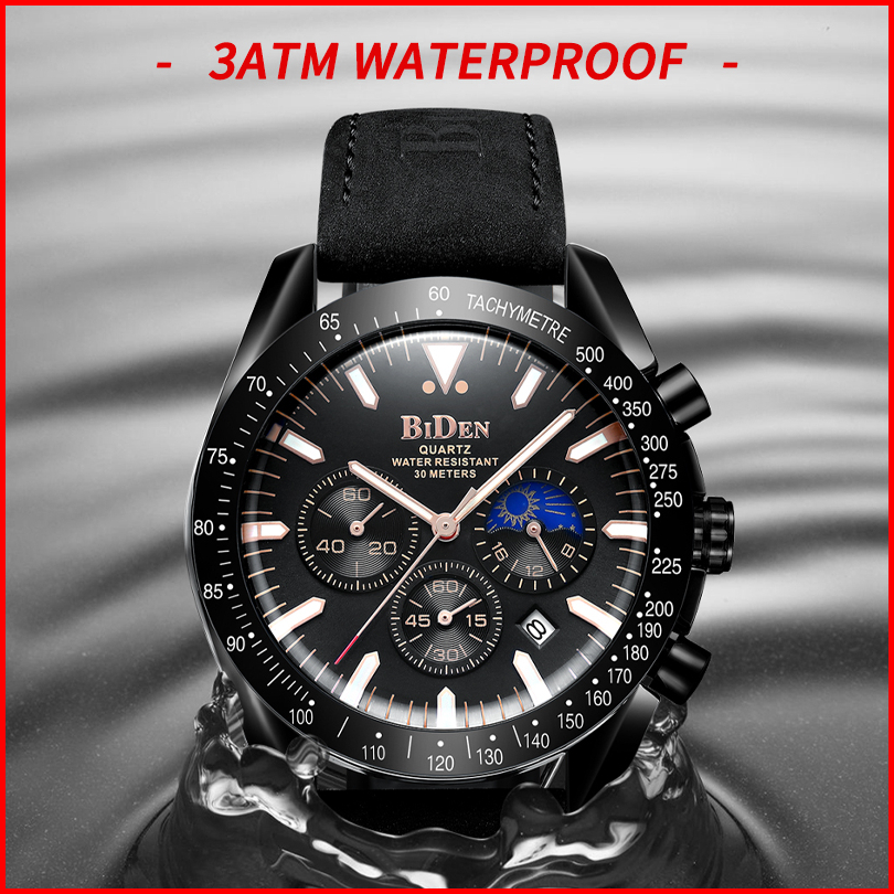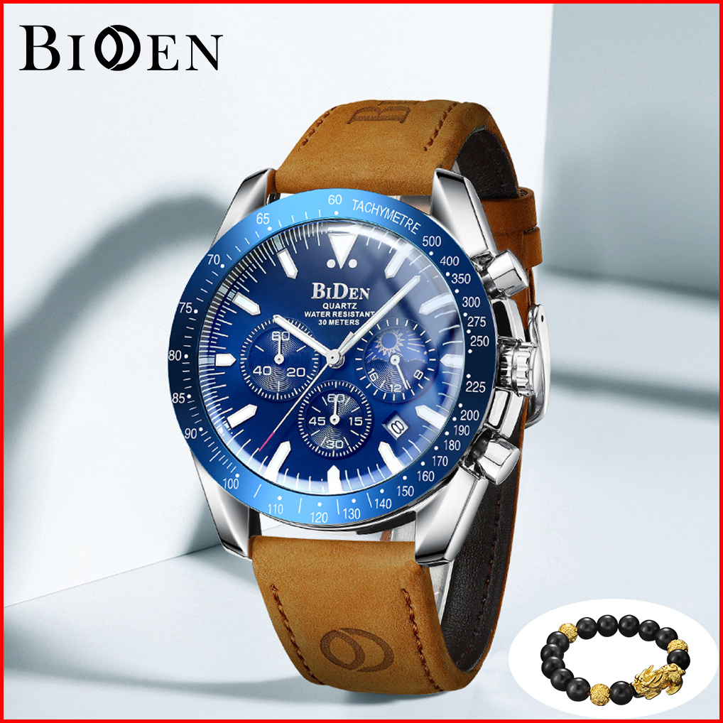 Biden Jam Tangan Pria Anti Air Olahraga Kronograf Kalender Bercahaya Kuarsa Jam Tangan Cowok Original