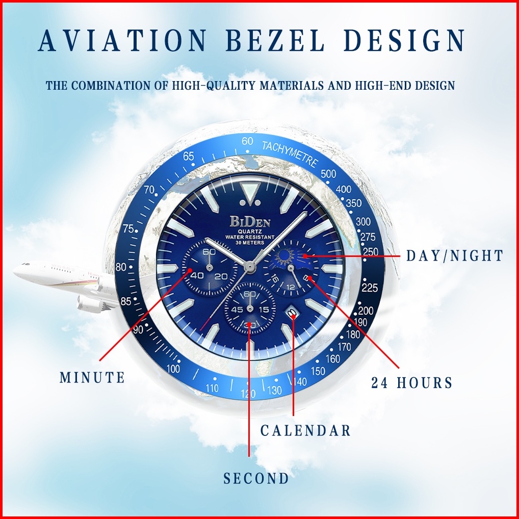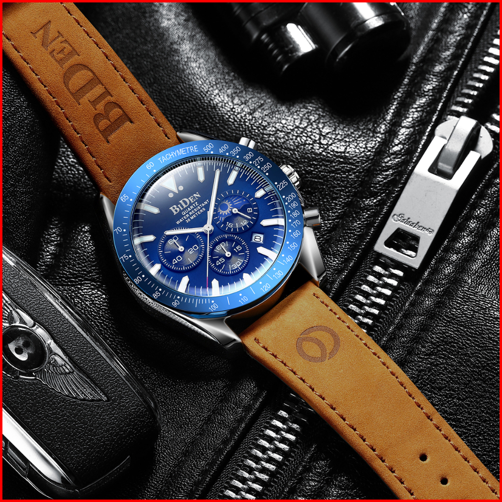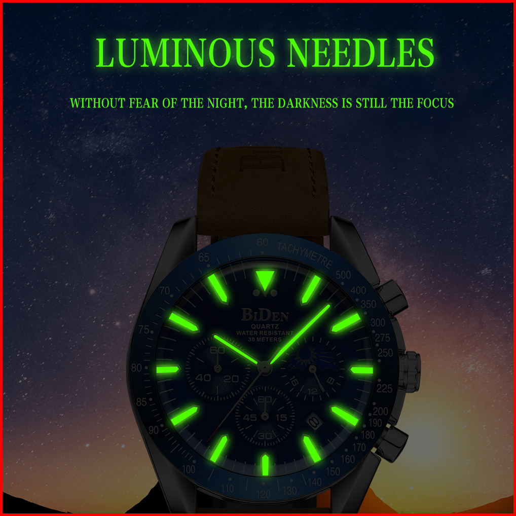Biden Jam Tangan Pria Anti Air Olahraga Kronograf Kalender Bercahaya Kuarsa Jam Tangan Cowok Original
