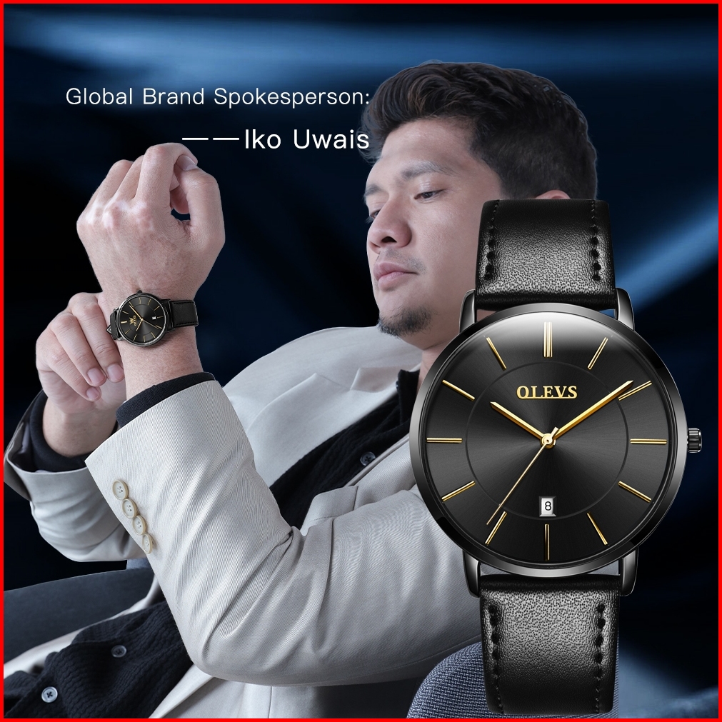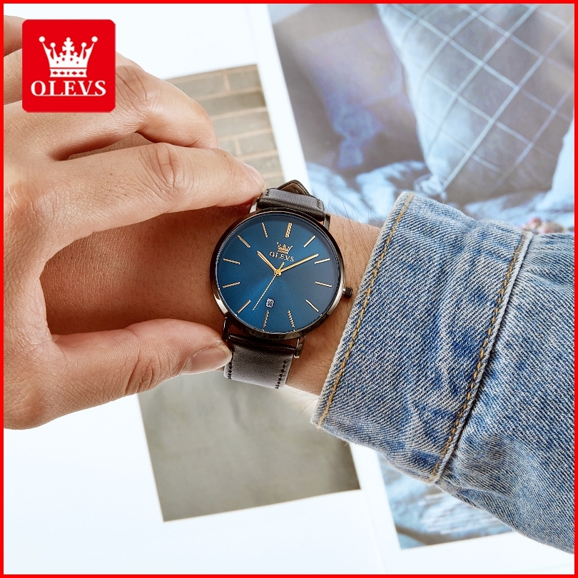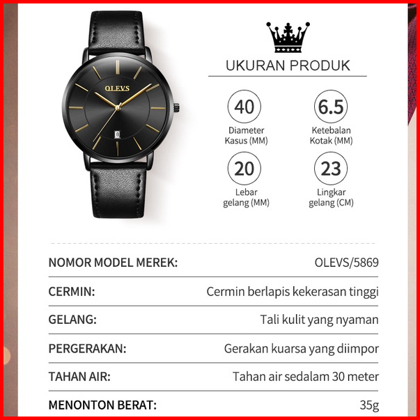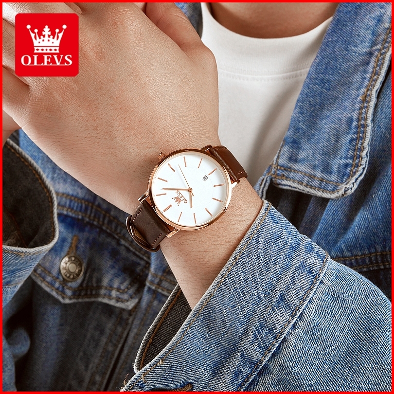 Olevs Jam Tangan Pria Anti Air Original 100 Tali Kulit Luxury Kalender Quartz Watch Men 5869