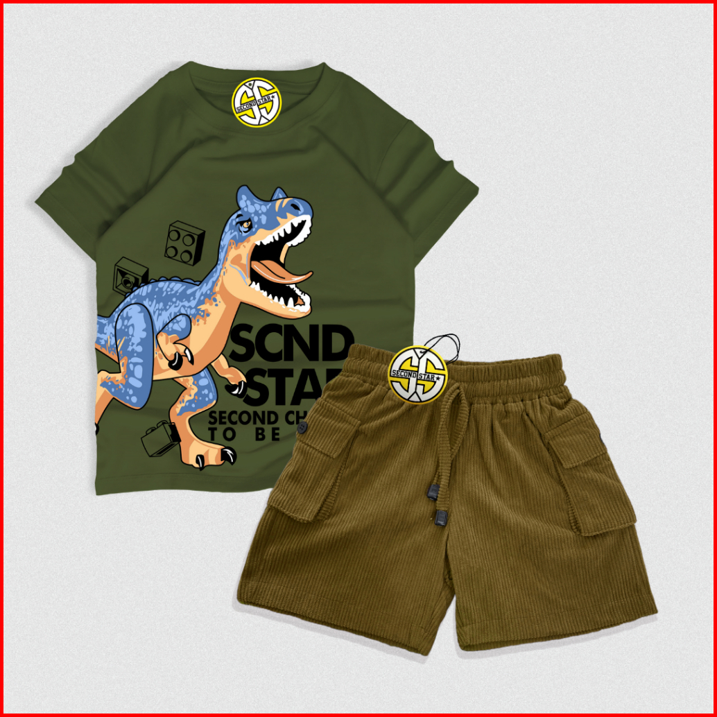 Secondstar Setelan Anak Laki-laki Perempuan Usia 1-10 Tahun Kaos Distro Dan Celana Corduroy Cargo