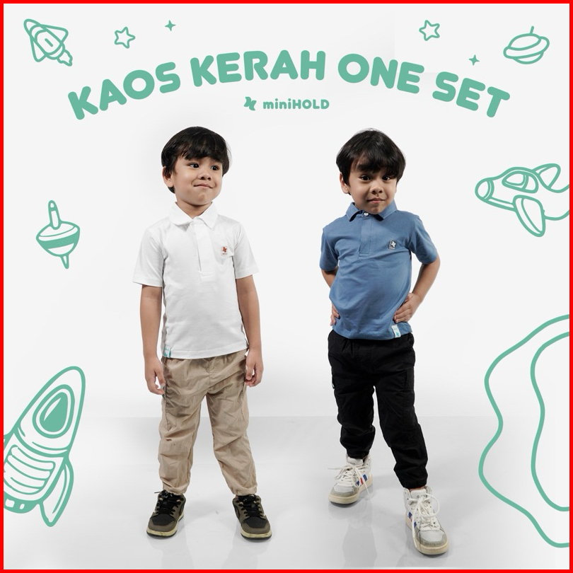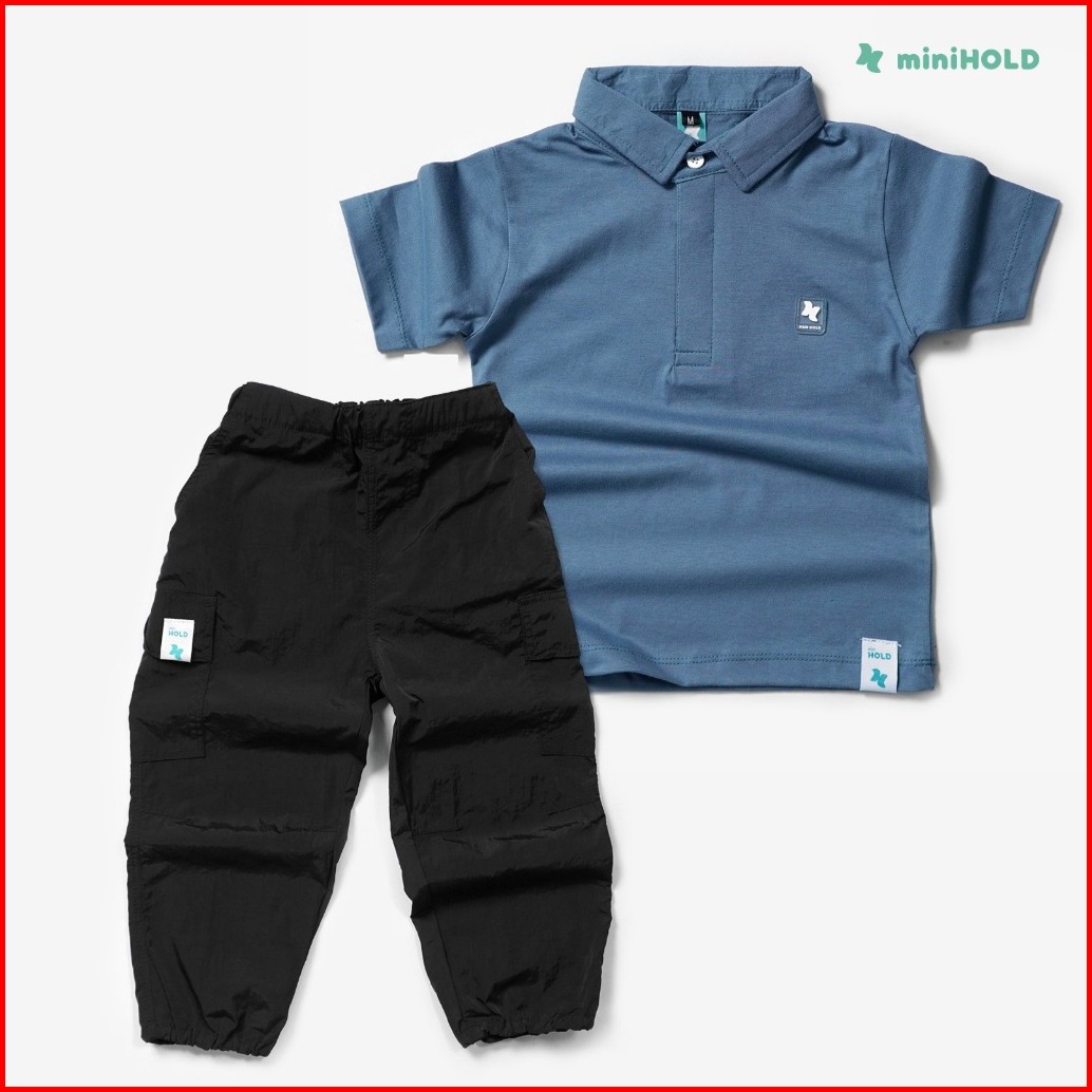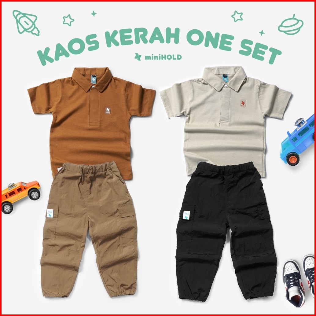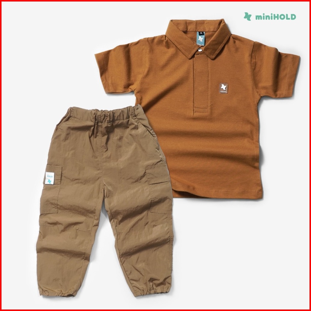 Minihold Kaos Kerah One Set Setelan Kaos Kerah Dan Celana Cargo Anak Usia 1-12 Tahun