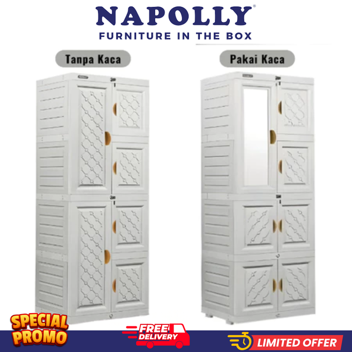 LEMARI PAKAIAN PLASTIK NAPOLLY MCAB 46 C ION RAK BAJU KACA CERMIN KABINET SUSUN BEST SELLER