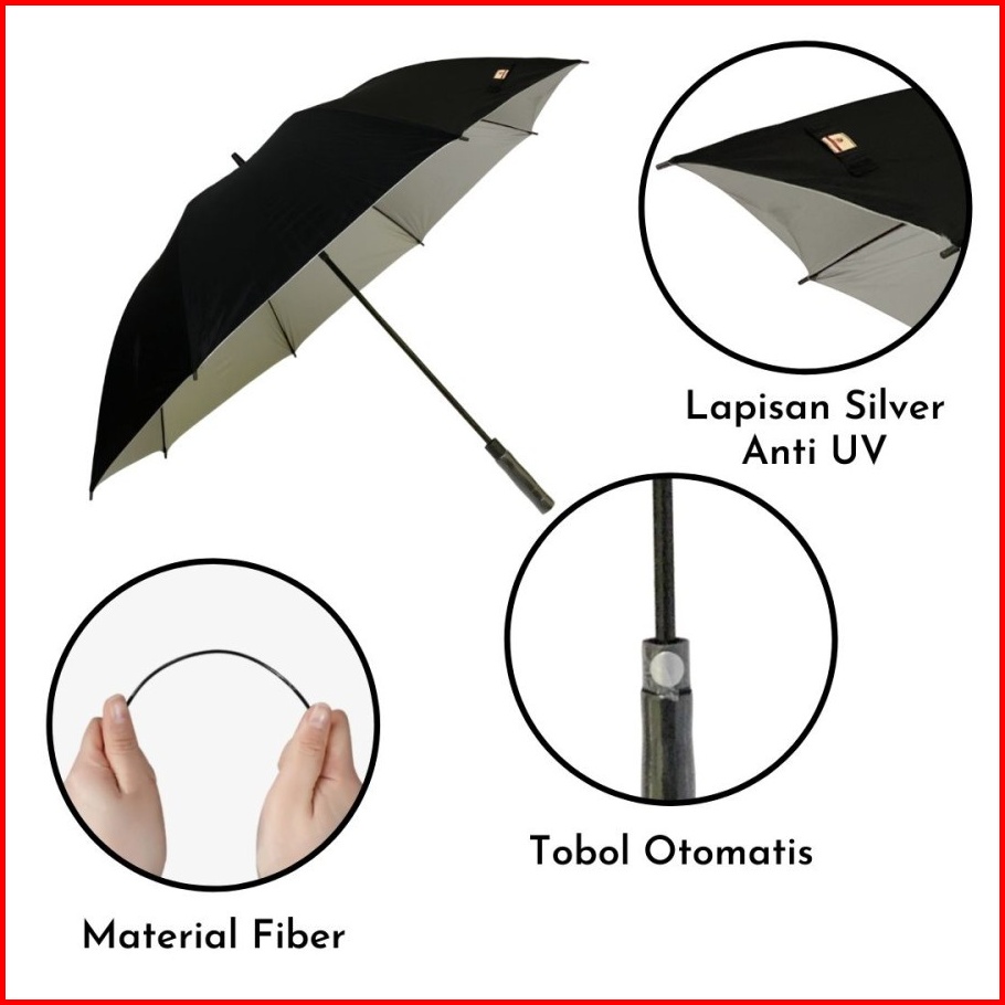Tabasa Payung Golf Fiber Otomatis Buka Lapis Silver Anti Uv