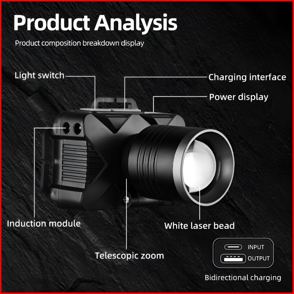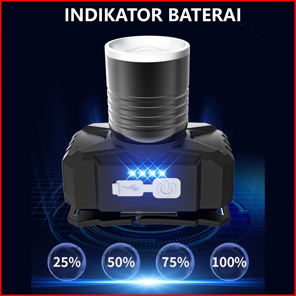H2s Senter Kepala Cas Led Laser Hs-306 Zoom Out Waterproof