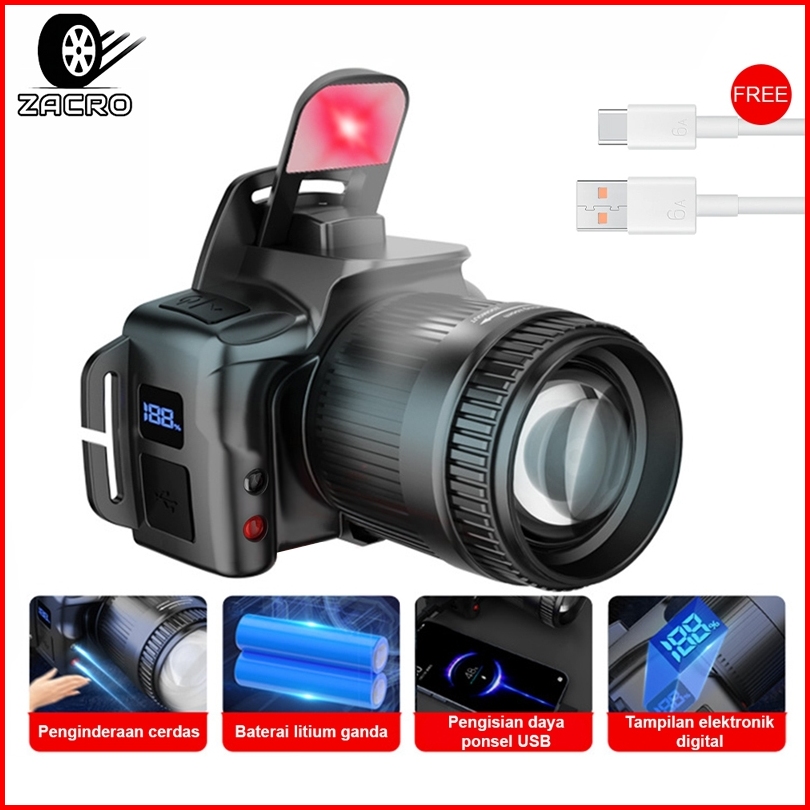 Zacro Senter Led Super Terang Senter Kepala Senter Kepala Super Terang Fokus Yang Dapat Disesuaikan Tahan Air Pengusir N