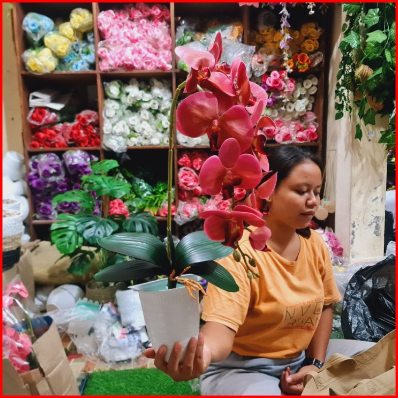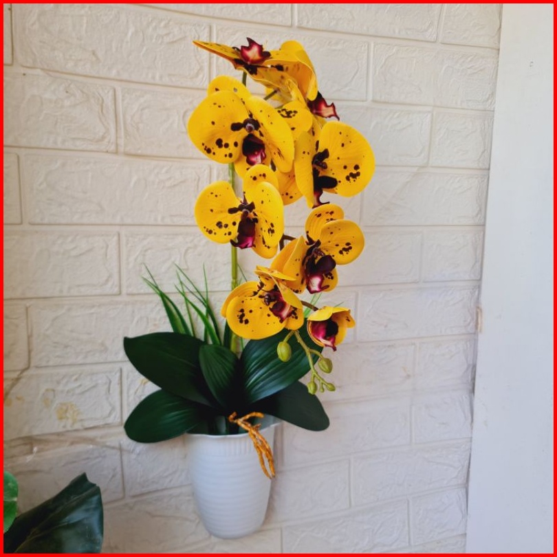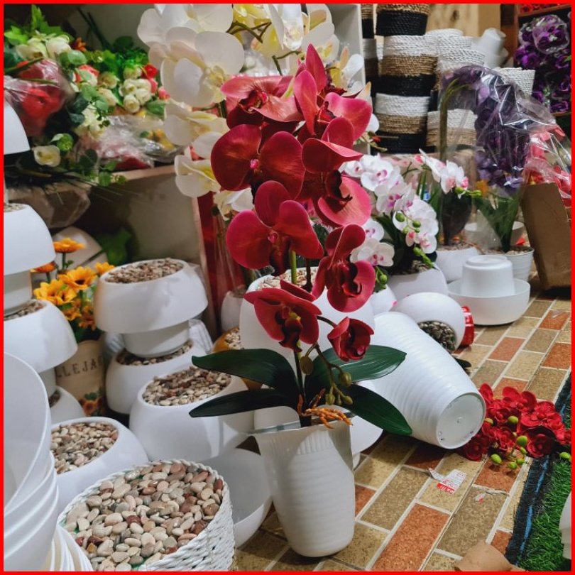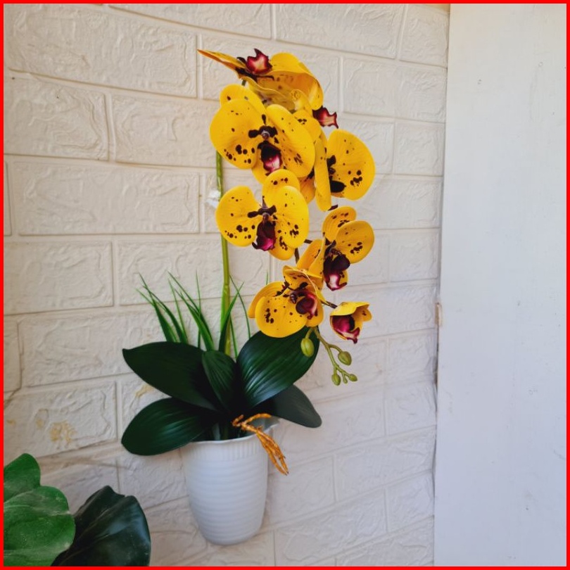 Bunga Anggrek Latex Premium Artificial Pot Dinding Ombak
