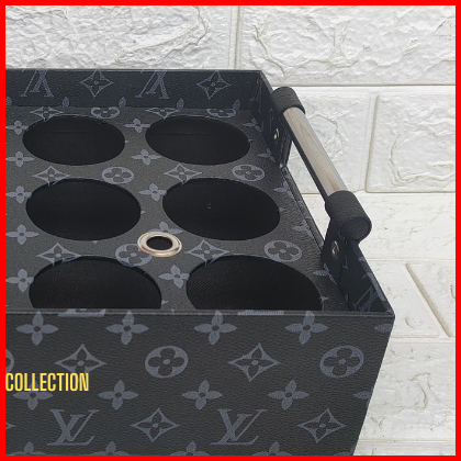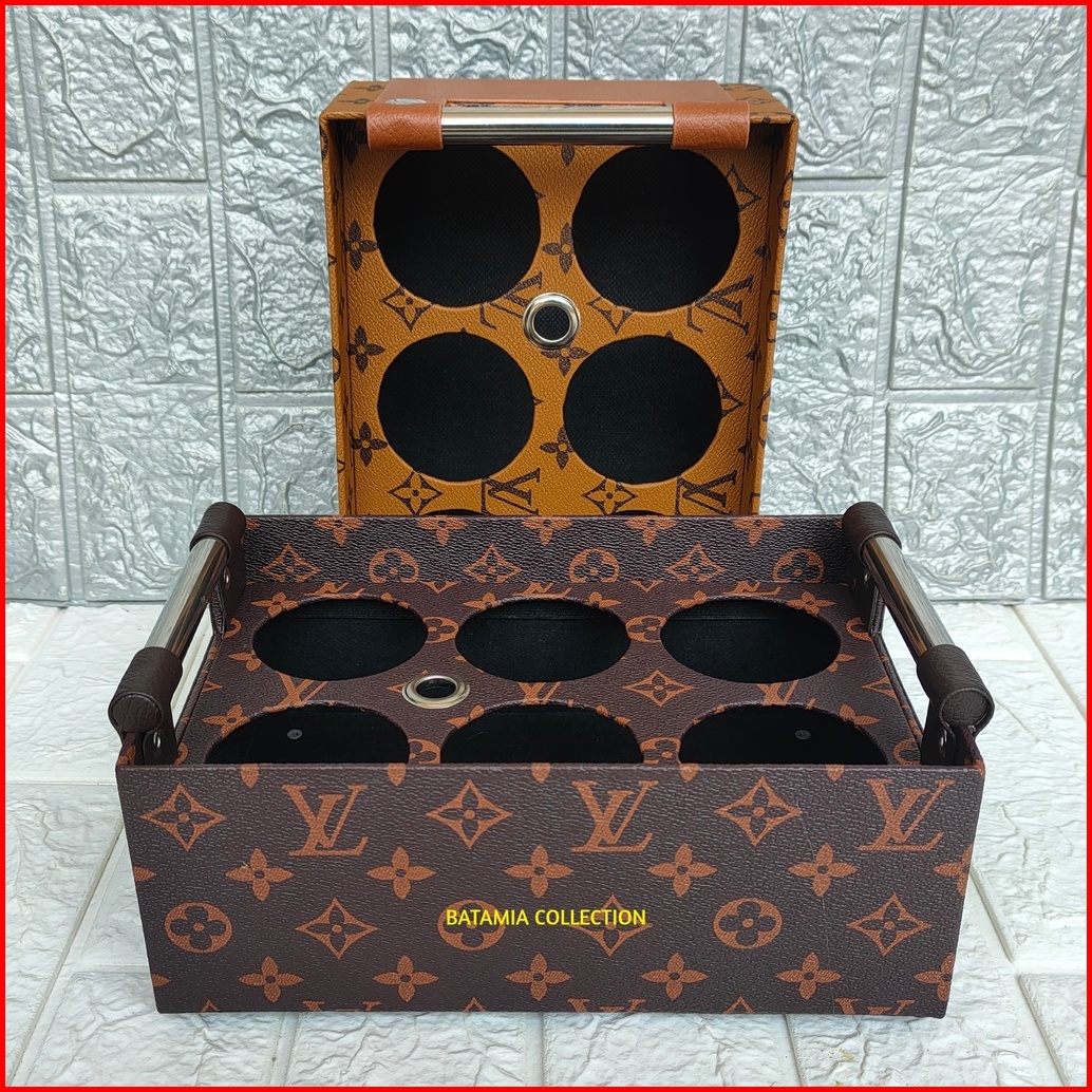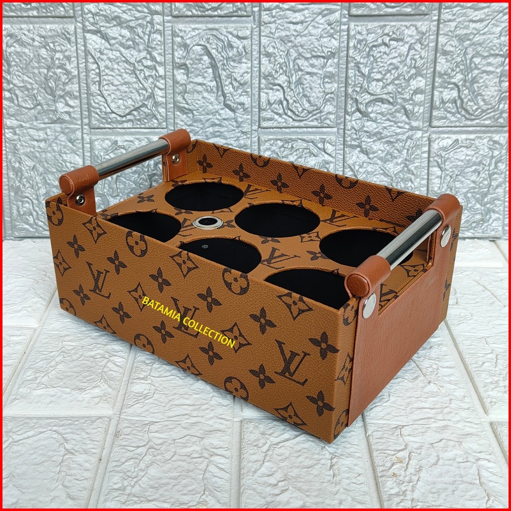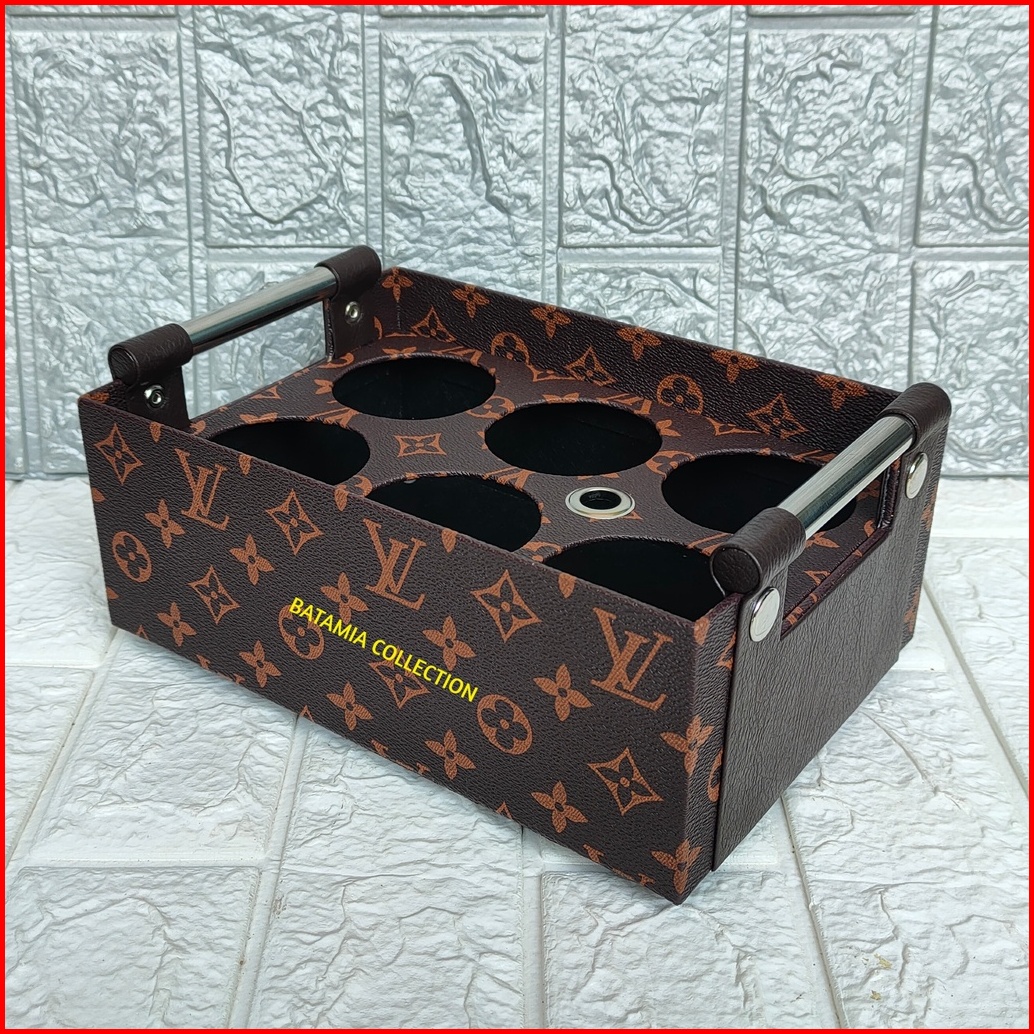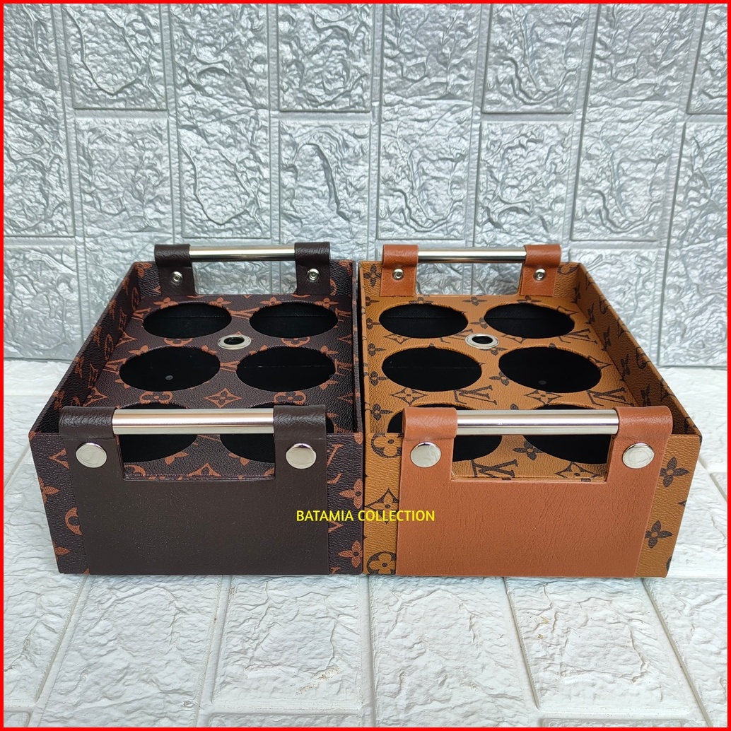 Tempat Aqua Gelas Motif Isi 6 Cup Keranjang Air Mineral Gelas Kulit Sintetis