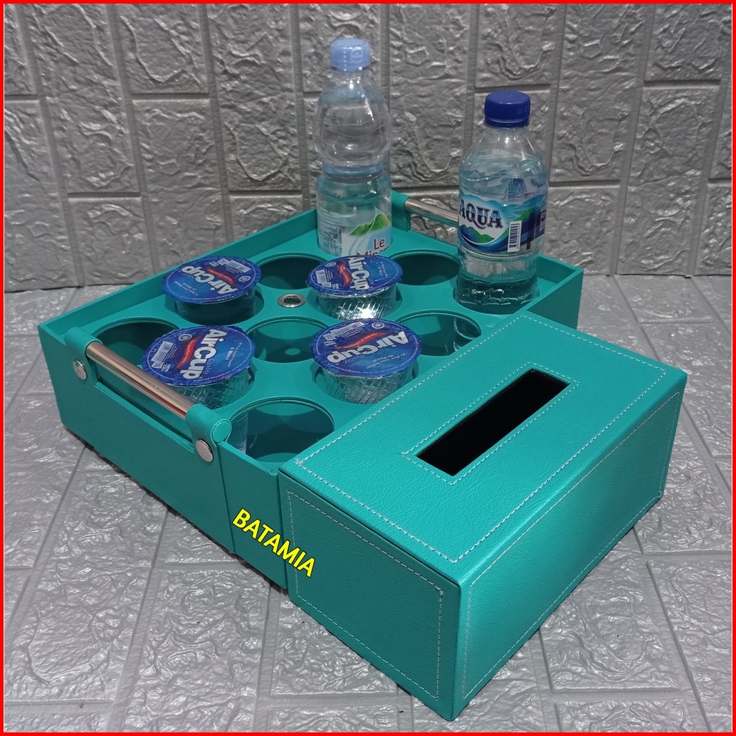 Tempat Aqua Gelas Botol Multifungsi 2 In 1 Kotak Tisu Keranjang Air Mineral Nampan Tray Tempat Air Mineral Gelas Keranja