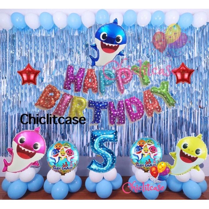 Dekorasi Ulang Tahun Anak Balon Ulang Tahun Anak Balon Karakter Set Paket Balon Ikan Baby Shark Biru Premium