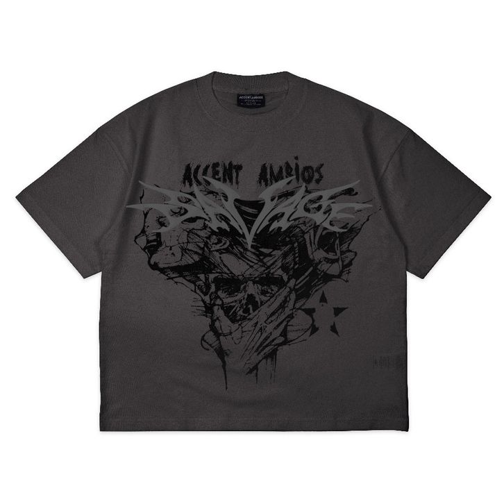 Kaos Pria Distro Bandung Boxy Oversized AccentAmbios Savage Abu Tua - Katun Combed 20s