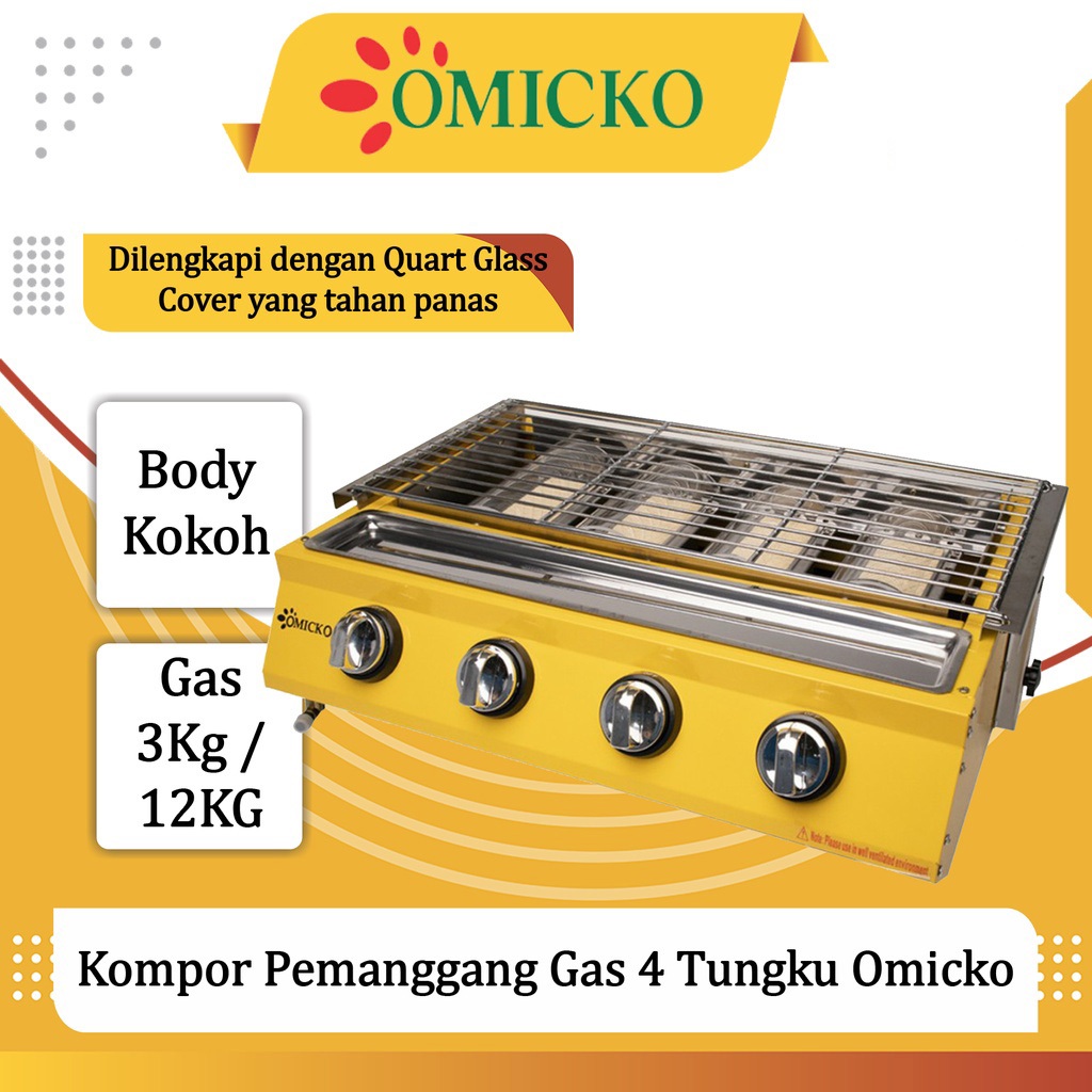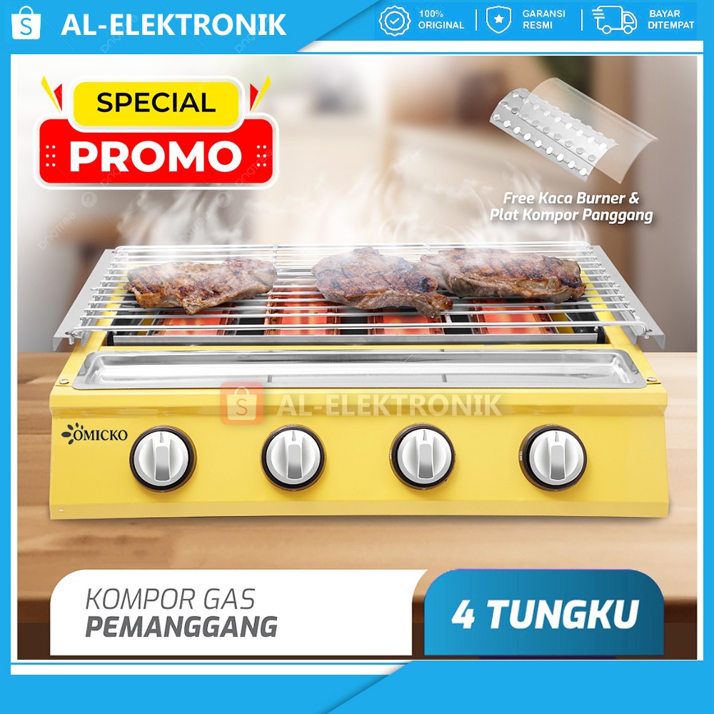 PAKET OMICKO Kompor BBQ 4 Tungku Kompor Pemanggang Bakar Sosis Omicko FREE Selang Dan Regulator FREE BUBLE WARP