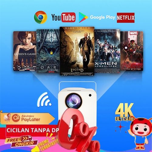 GRATIS ONGKIR T2 PROYEKTOR ANDROID 1080P SMART PROJECTOR 6000 LUMEN ANDROID 10.0 RAM 2G ROM 16G PROYEKTOR HOME