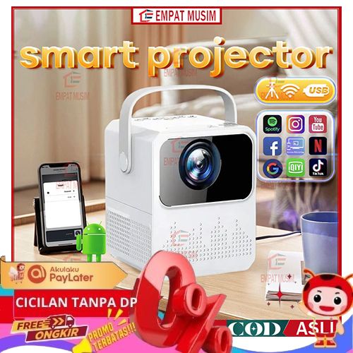 GRATIS ONGKIR T2 MINI PROYEKTOR ANDROID TV 1080P SMART PROJECTOR 6000 LUMEN ANDROID 9.0 RAM 2G+16G NETFLIX/YOUTUBE