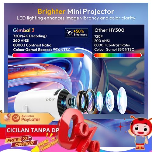 GRATIS ONGKIR 【2 HADIAH GRATIS】XGODY GIMBAL 3 PROYEKTOR ANDROID11.0 4K FHD LED 1080P WIFI MINI SMART 1GB+8GB