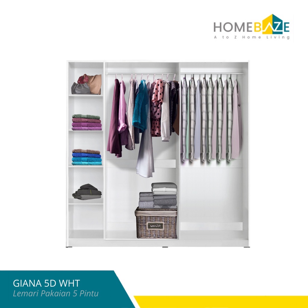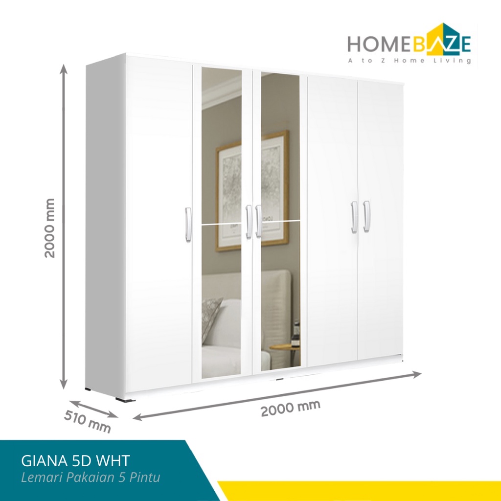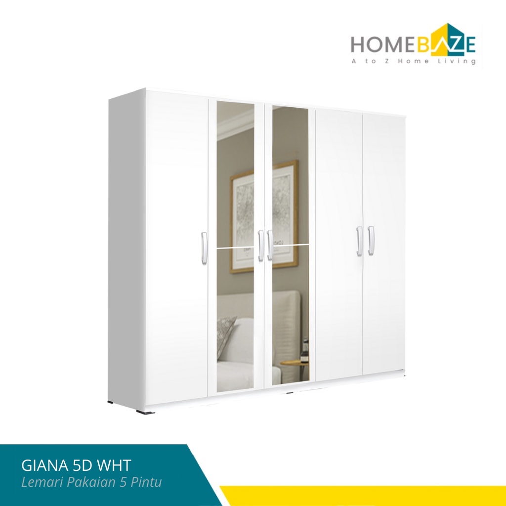 Lemari Pakaian Giana 5 Pintu Putih Minimalis Kokoh