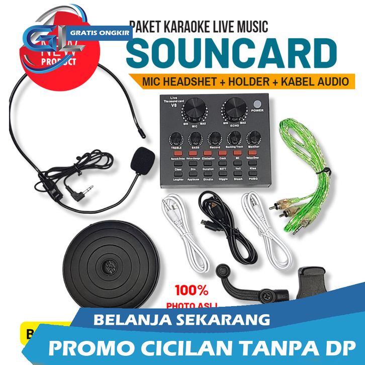 ONGKIR 0% SOUNDCARD SOUND CARD V8 RECORDING BLUETOOTH LIVE STREAMING KARAOKE TIKTOK YOUTUBE
