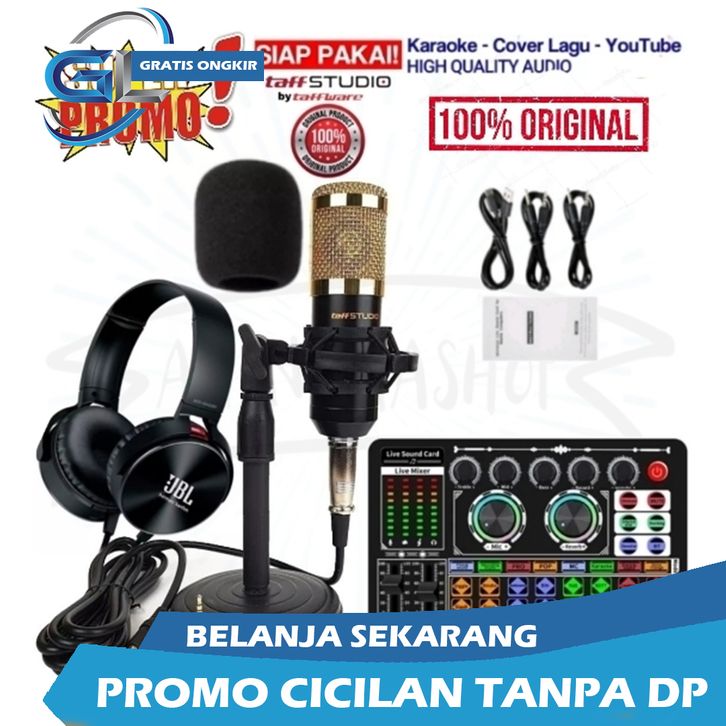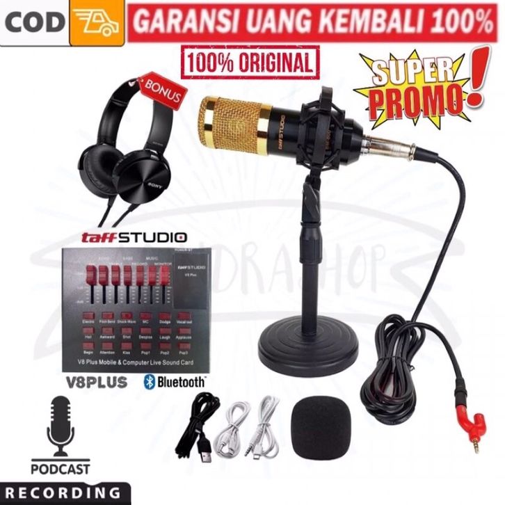 ONGKIR 0% GRATIS HEADPHONE PAKET REKAMAN MIC CONDENSER BM800 + STAND MEJA + SOUNDCARD V8 PODCAST KARAOKE