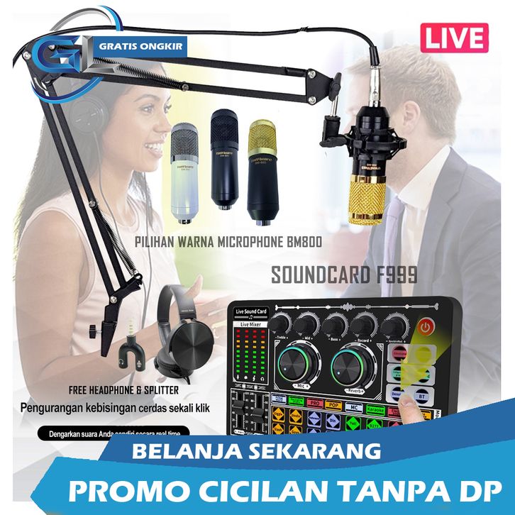 ONGKIR 0% PAKET MICROPHONE KONDENSER TAFFSTUDIO BM800 PLUS SOUNDCARD F999 HIGH QUALITY FREE HEADPHONE