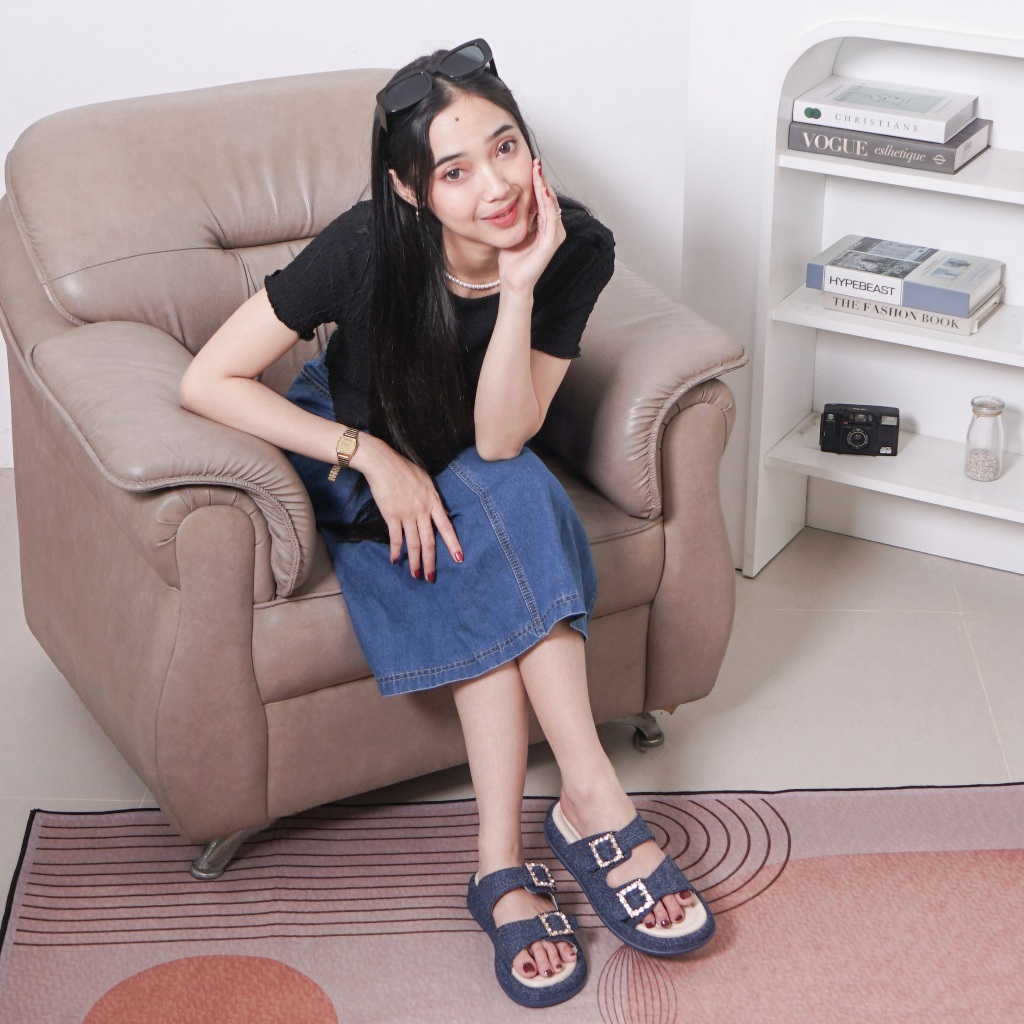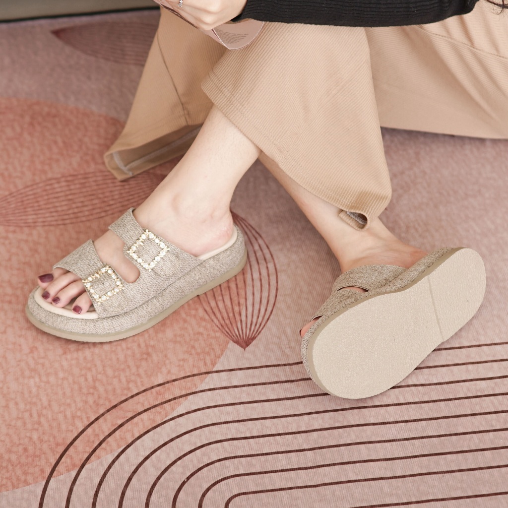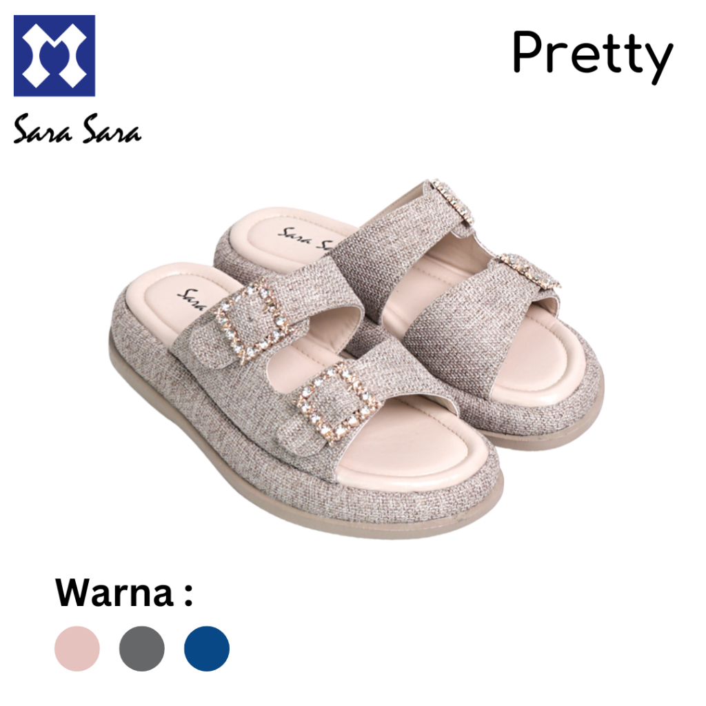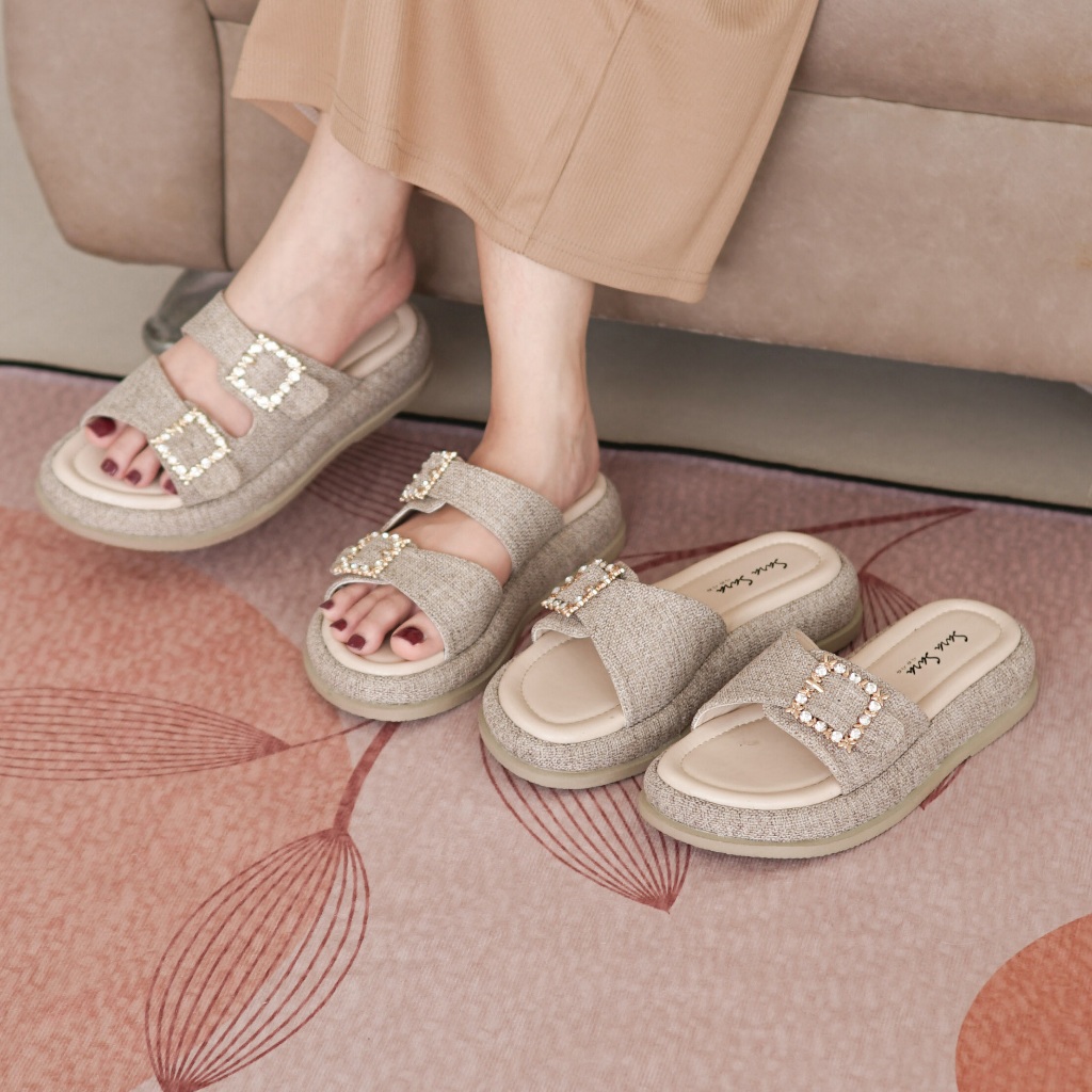 Sara Sara Pretty Sandal Slop Platform Wanita Gesper Berlian