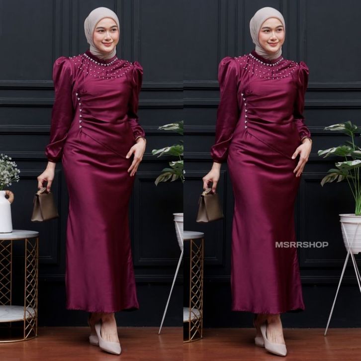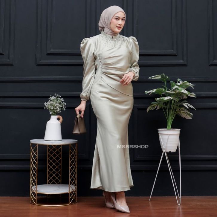 DRESS KONDANGAN MODERN VINA DRESS SATIN SILK PREMIUM WANITA KONDANGAN MUSLIM BODY FIT VIRAL MERMAID 2026