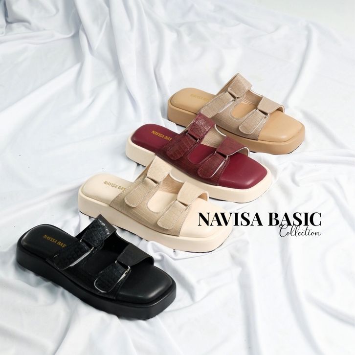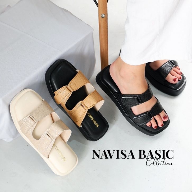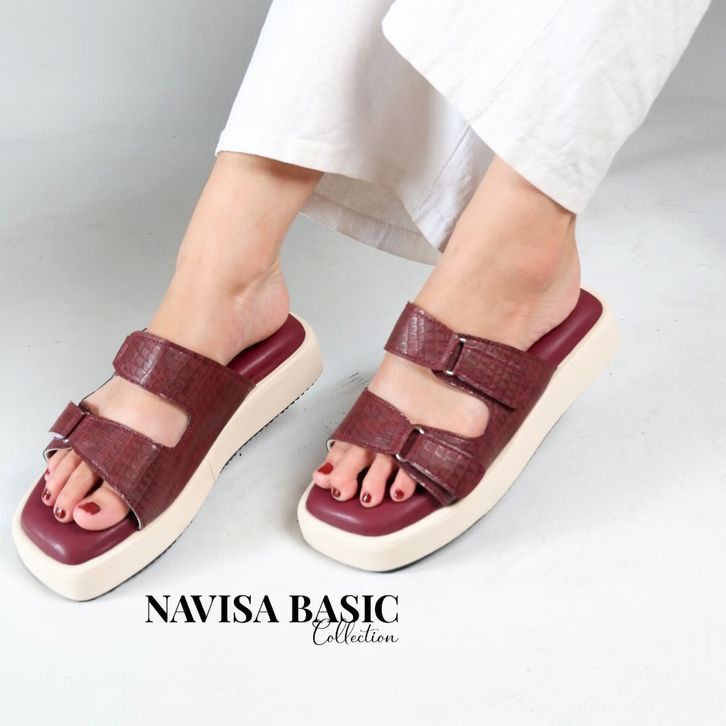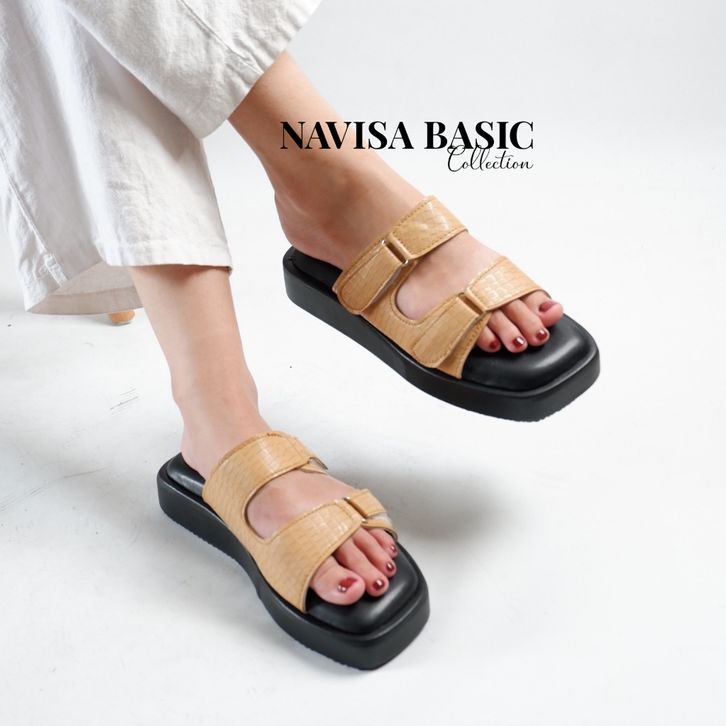 Sandal Wanita Motif Croco Super Empuk Navisa Basic Collection Sandal Tali Sandal Hak Sandal Kasual Sandal Kekinian