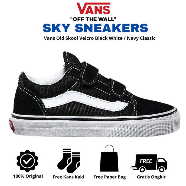 [Mall] SEPATU PRIA WANITA VANS OLD SKOOL VELCRO BLACK WHITE / NAVY CLASSIC SEPATU PRIA ORIGINAL BRAND VANS