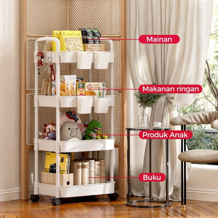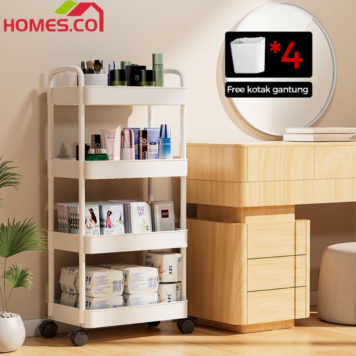rak buku In StockHomes Rak Dapur Portable Rak Susun Serbaguna Rak Buku Minimalis Dengan Roda Rak Penyimpanan Serbaguna/