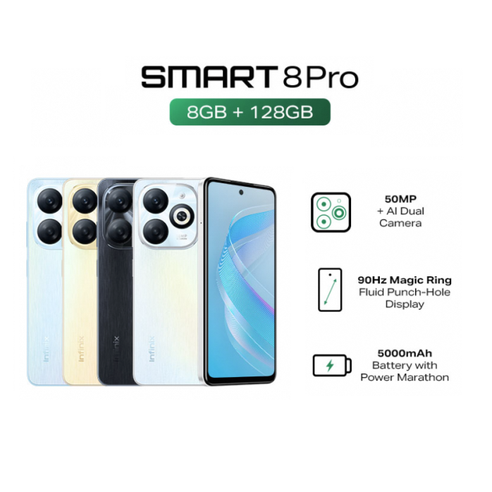 INFINIX SMART 8 PRO 8GB+128GB | Mediatek Helio G36 | FULLSET | ORIGINAL | GARANSI 1 TAHUN