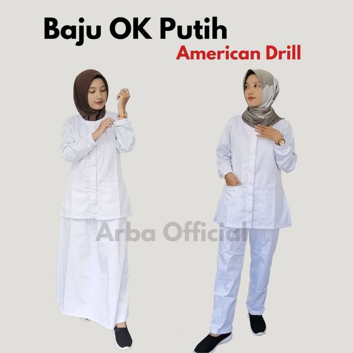 Seragam Perawat Wanita Baju Perawat Putih Full Kancing Seragam Oka Dokter Nakes Lengan Panjang Karet One Set Rok Celana