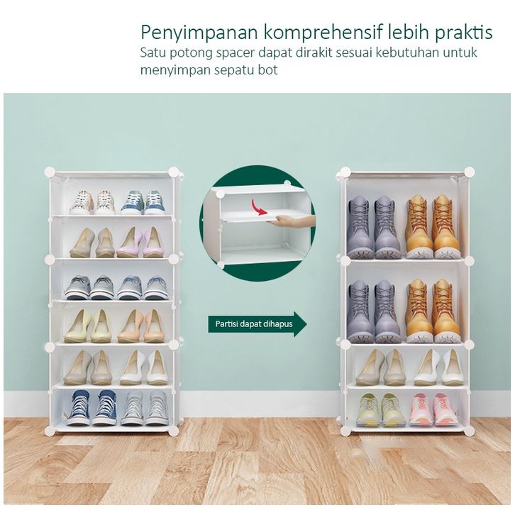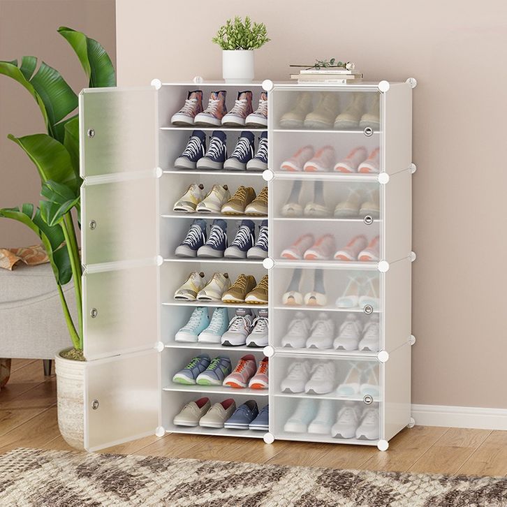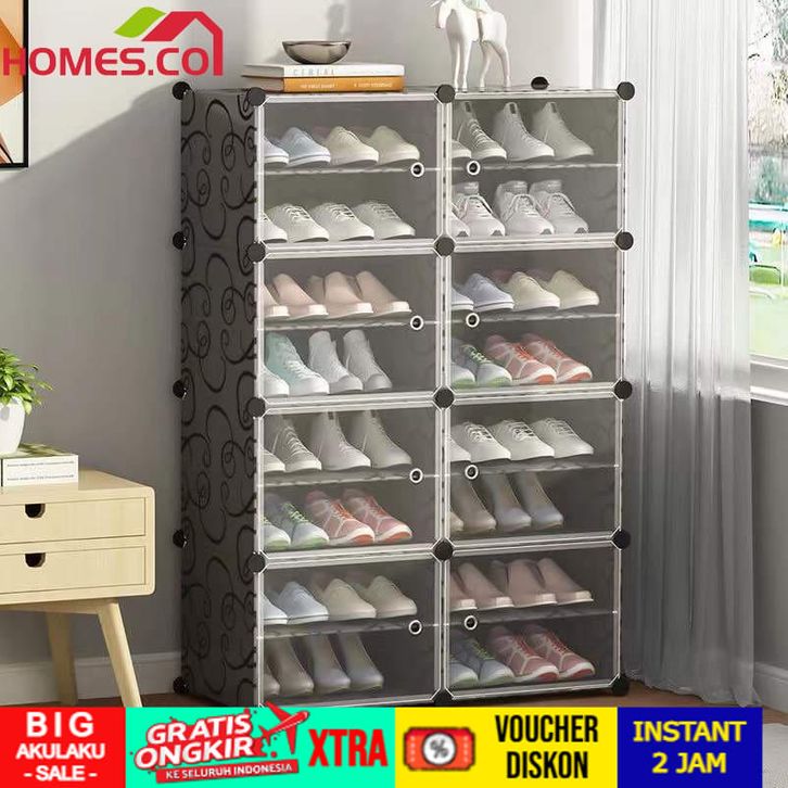 Homes 2 row 8 layer Rak Sepatu Tertutup Plastik/Lemari Sepatu Susun Portable/Shoes Storage/Box Tempat Penyimpanan
