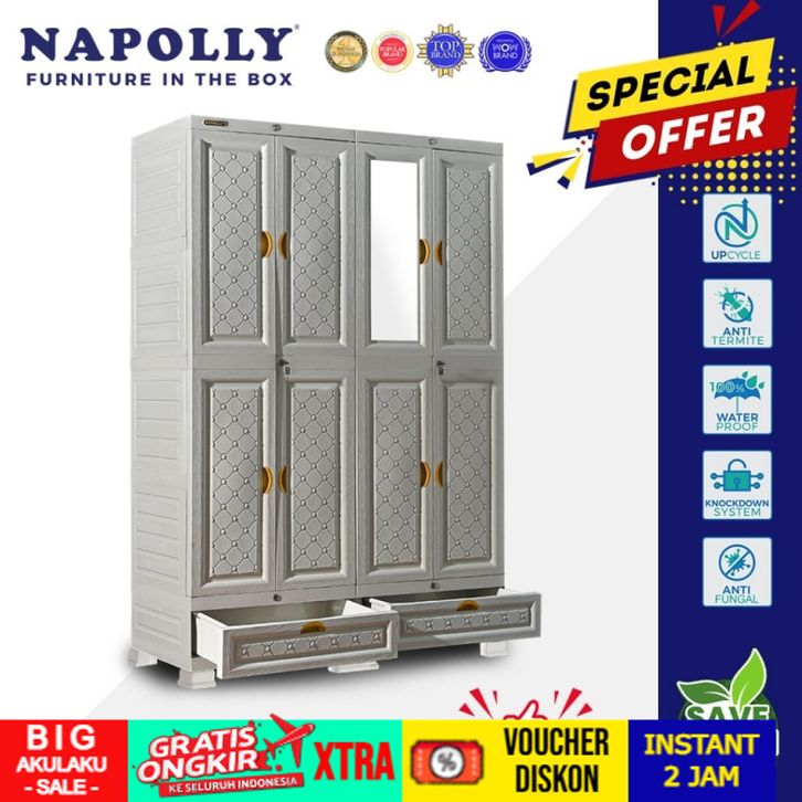 LEMARI PAKAIAN NAPOLLY 4 PINTU GANTUNG CERMIN JUMBO