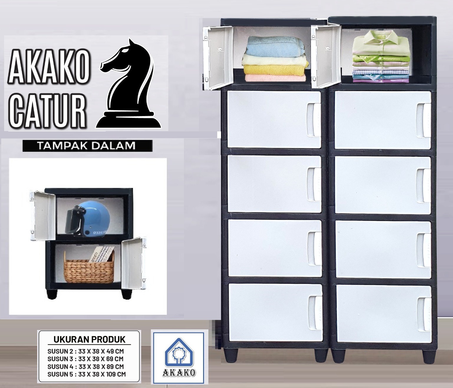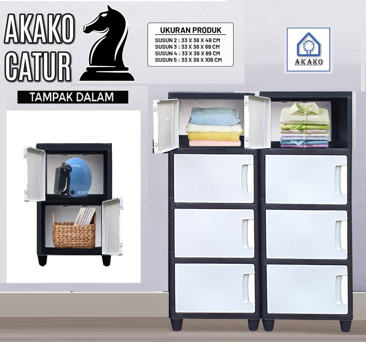 ANDA MITRA Lemari Pakaian Baju Plastik HITAM PUTIH Akako CATUR Susun 2 3 4 5 Laci Pintu MURAH KOKOH KUAT BAGUS TAHAN