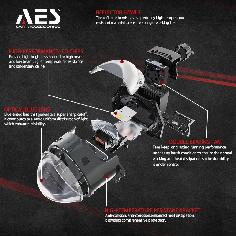 Bilens LED Projector Lens Biled Bi-led F002 65 Watt 3 Inch High Power Merk AES