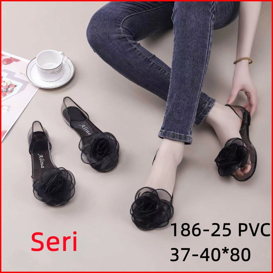 Sepatu Jelly Wanita Karet Import 186-a 37-40 Flatshoes Teplek Kaca Motif Bunga