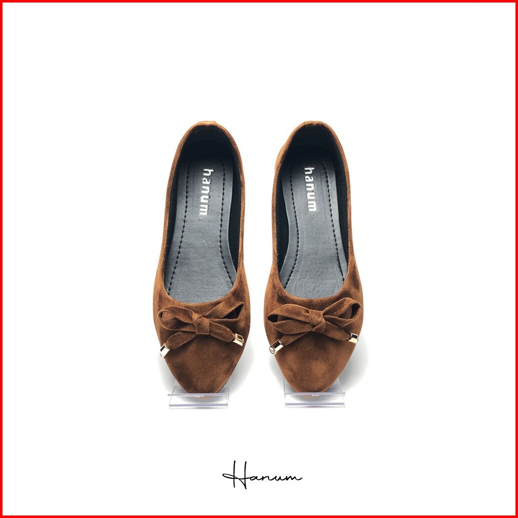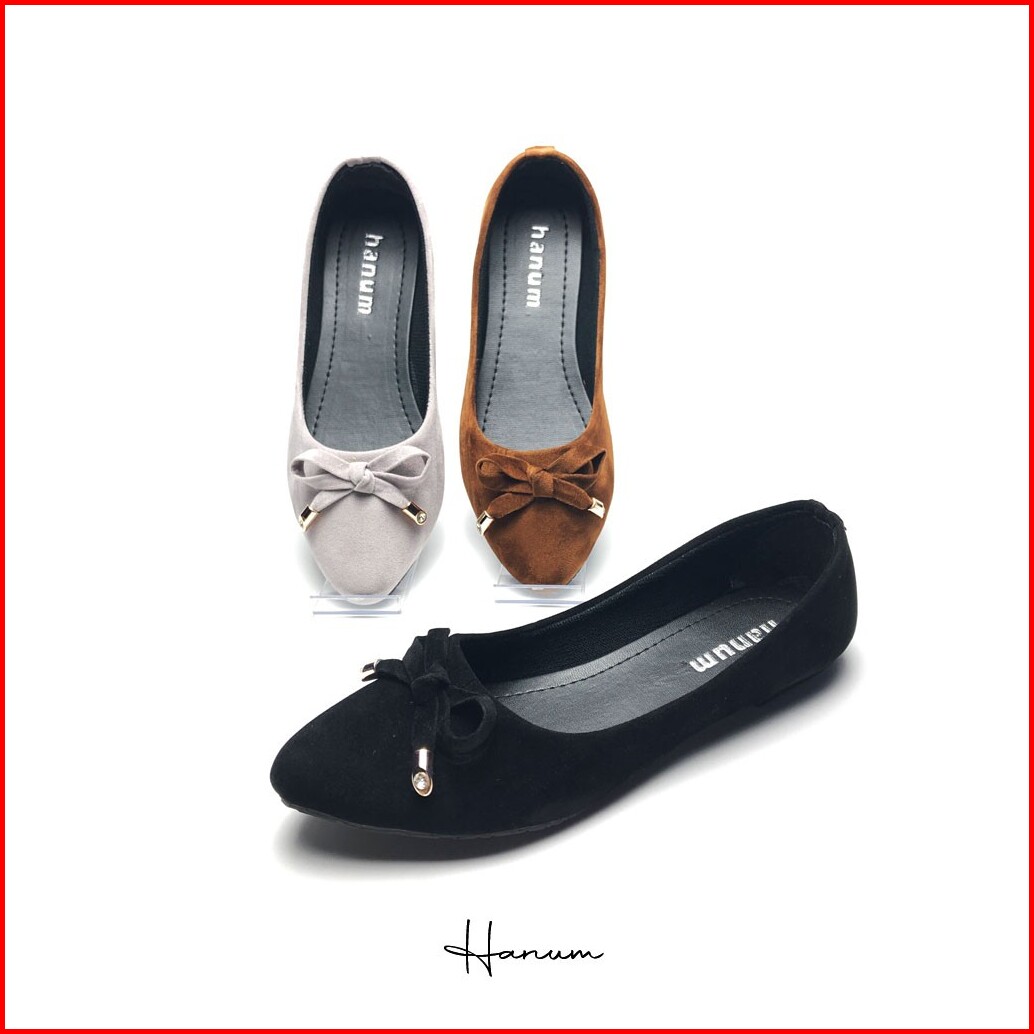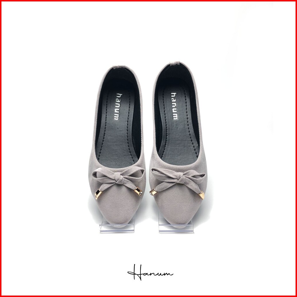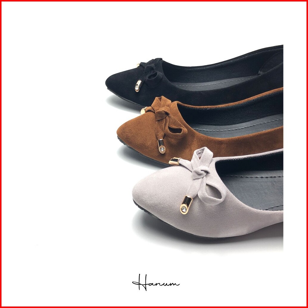 Hanum - Sepatu Flat Shoes Balet Wanita Hf06 Suede Pita Diamond