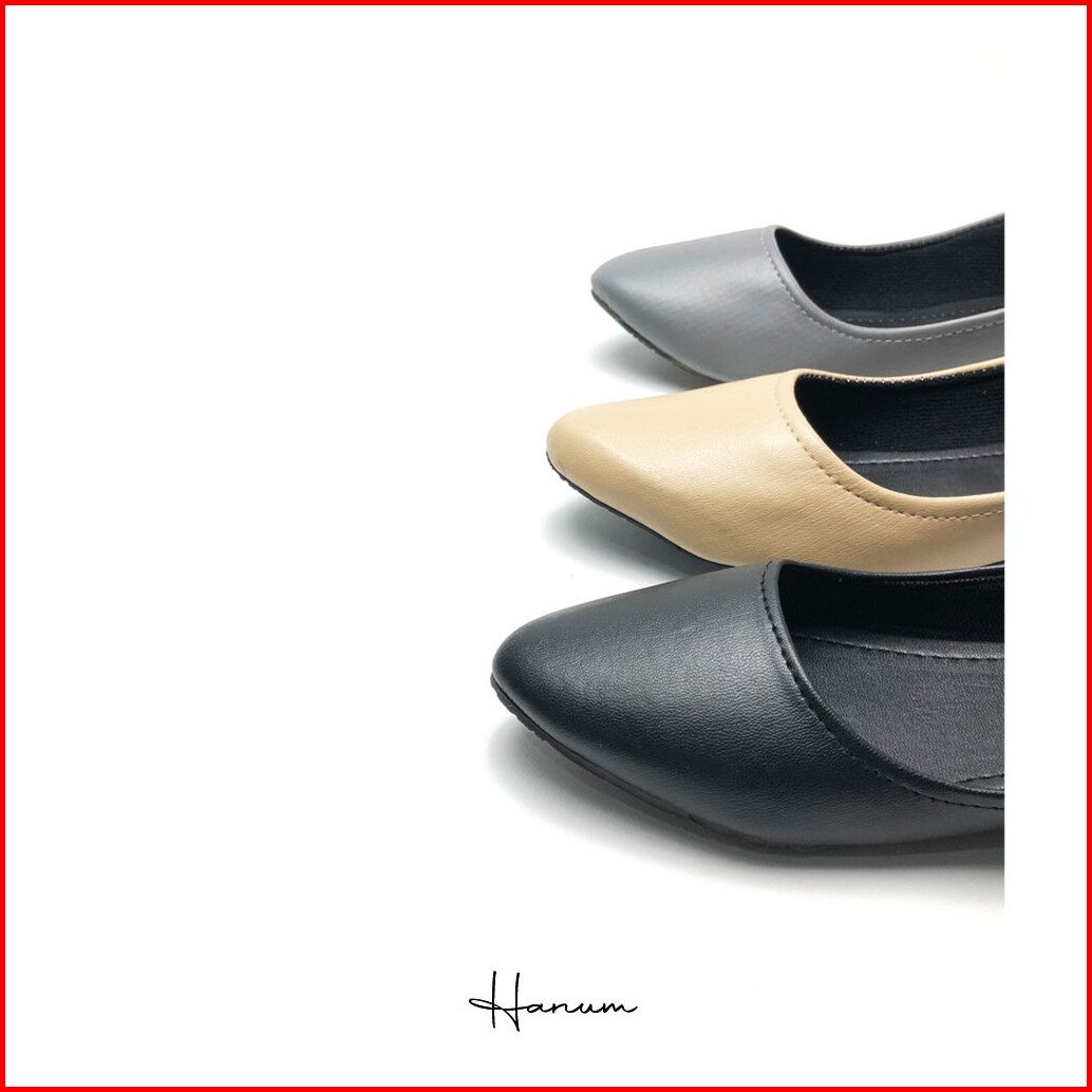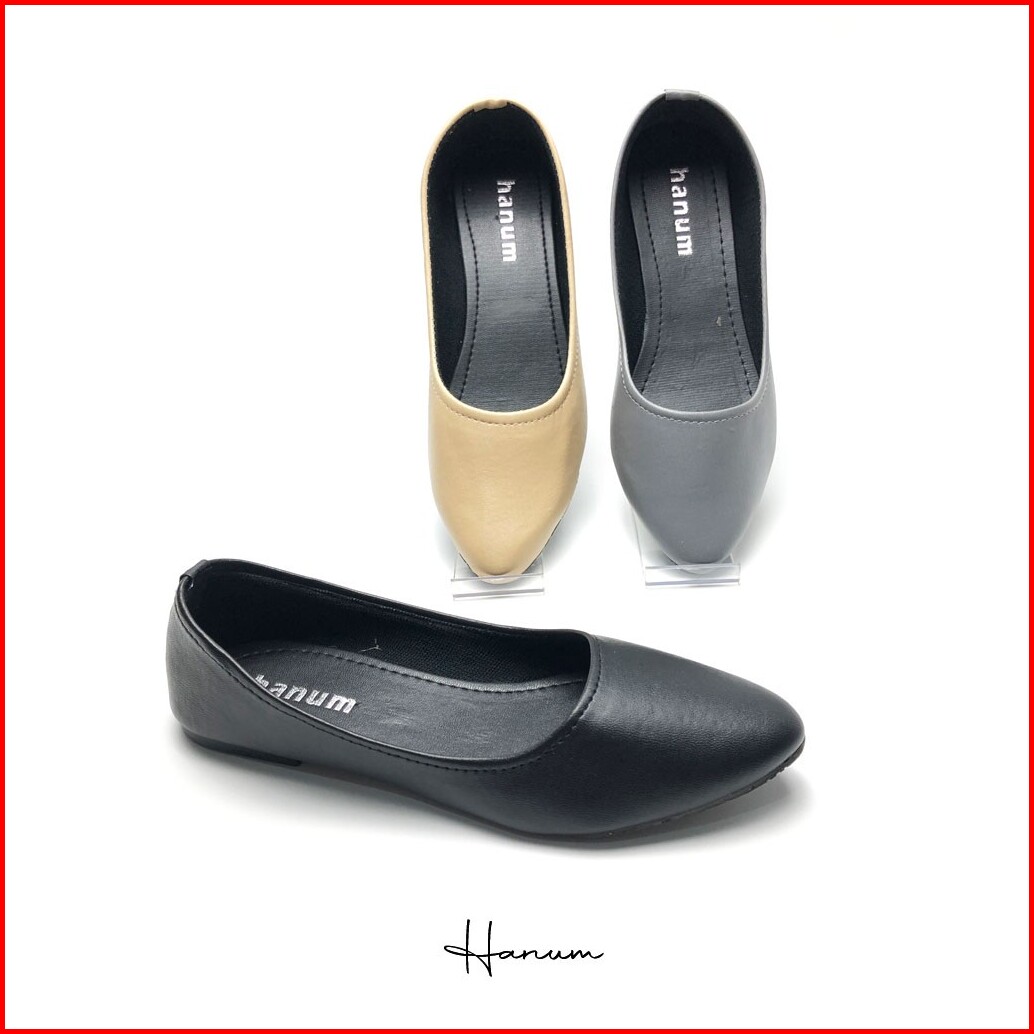 Hanum - Sepatu Flat Shoes Balet Wanita Hanum Hf03 Polos Abu Hitam Moka