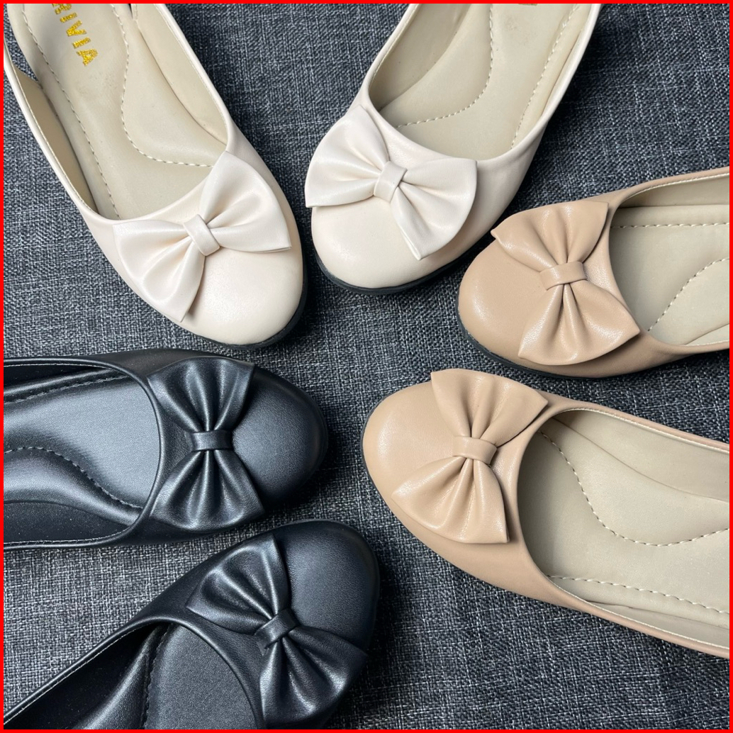 Sepatu Flatshoes Wanita Kasual Trendy Pita Kupu Bahan Sintetis Premium Dengan Busa Empuk Sol Karet